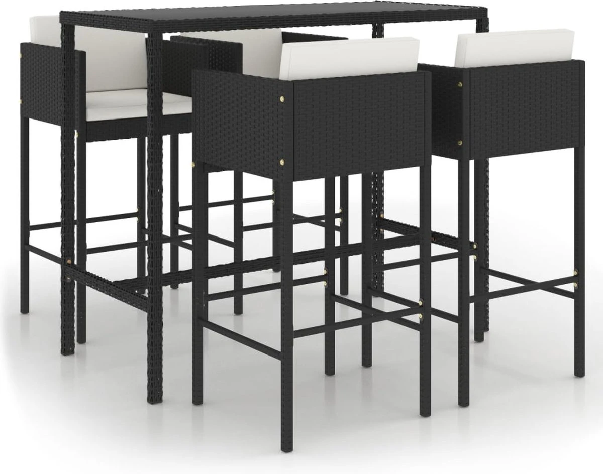 Cet ensemble de bar de jardin est en rotin PE résistant aux intempéries et à l’eau et est donc facile à nettoyer, résistant et adapté à un usage quotidien. Le cadre en acier enduit de poudre rend la table et les tabourets robustes et durables. Le dessus de table en verre trempé est idéal pour placer des boissons, de la nourriture ou des objets décoratifs. Le repose-pieds et les coussins confèrent au tabouret un confort d’assise supplémentaire. Grâce à la construction légère, toutes les pièces sont faciles à déplacer.