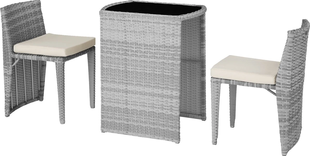 Ce gracieux ensemble de jardin en osier de tectake est idéal pour manger, se détendre et discuter en plein air. La table et les deux chaises avec les coussins de siège confortables et hydrofuges sont livrées assemblées. Lorsqu’il n’est pas utilisé, le groupe de rotin raffiné peut être rapproché pour économiser de l’espace. Le tressage fin du polyratane durable et le cadre en aluminium stable font de cette garniture en acier inoxydable le parfait mobilier d’extérieur. Petit, léger et confortable: l’ensemble de rotin invitant tectake combine un design réfléchi avec un grand confort.