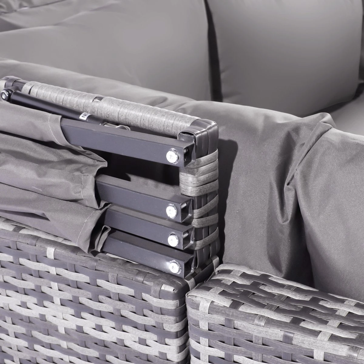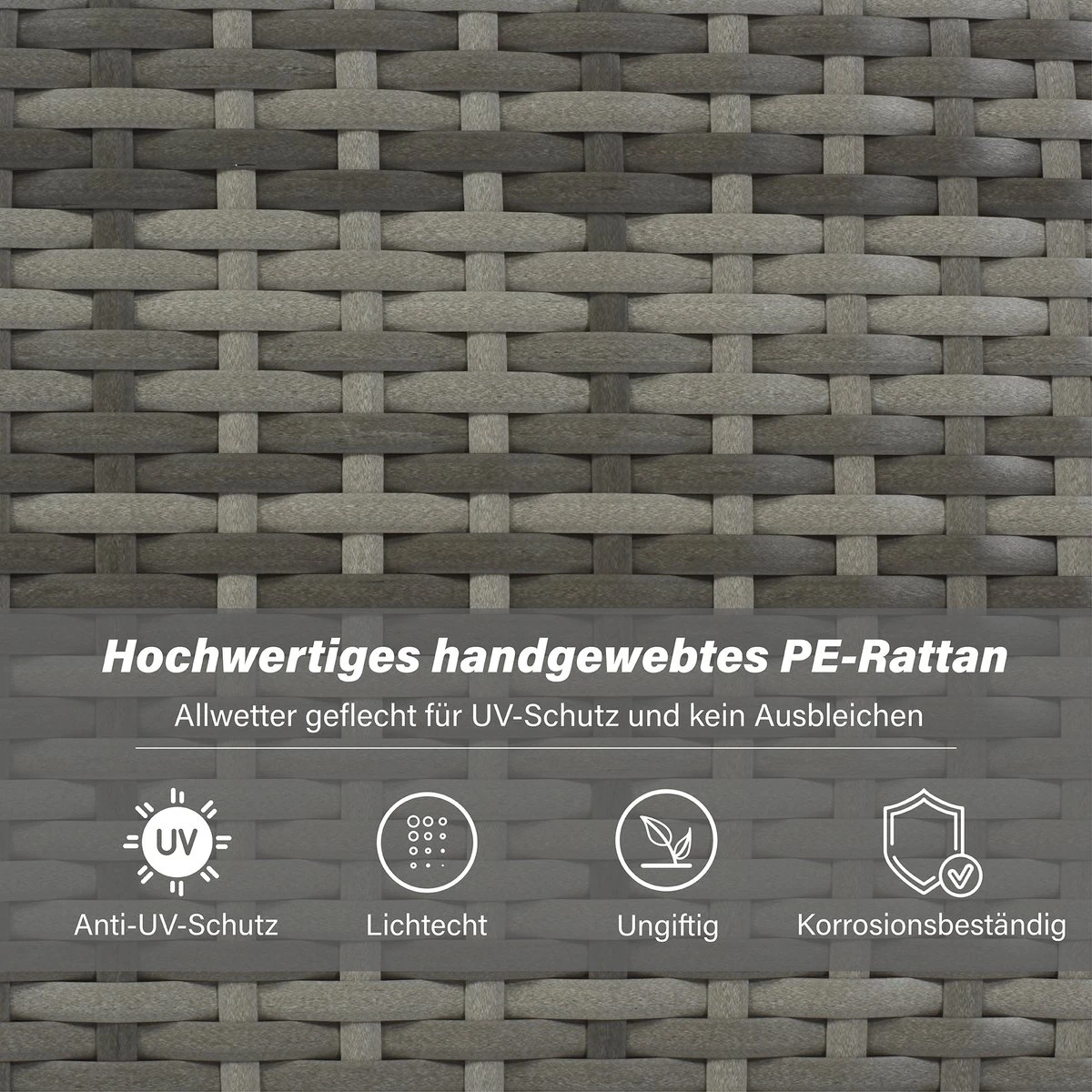 【Cadre robuste】 : Avec un cadre en fer enduit de poudre, des tisserands qualifiés enveloppent le cadre avec du rotin PE soigneusement sélectionné, le cadre transversal inférieur est conçu pour résister au vent et à la pluie toute l’année.