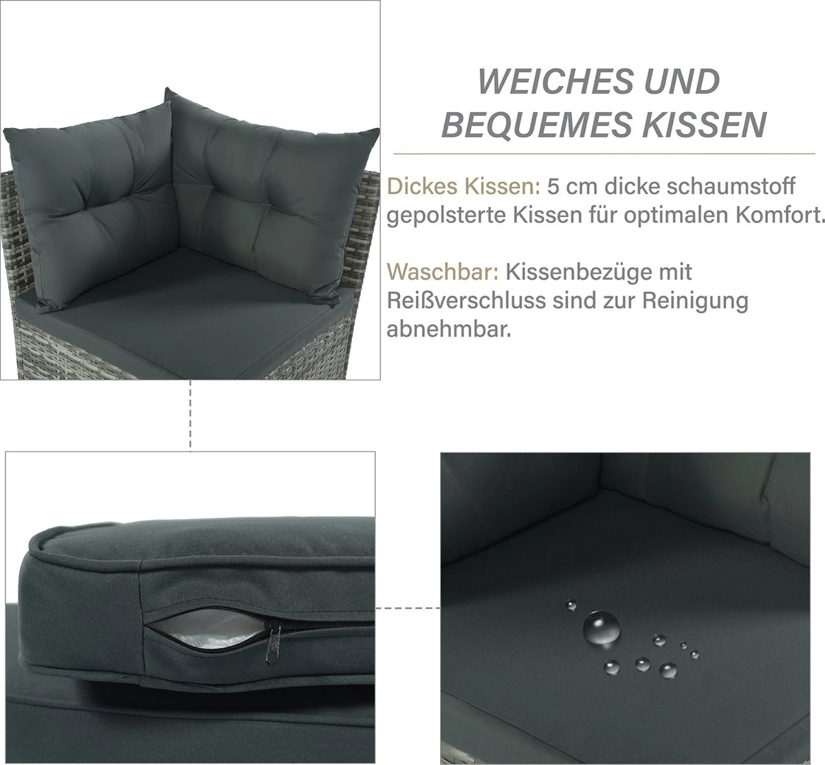 【Polyvalent】 L’ensemble de canapé 8 pièces peut accueillir jusqu’à 9 personnes et peut être placé dans différentes configurations pour différentes occasions et espaces. C’est un bon choix pour votre terrasse, votre terrasse, votre jardin, votre jardin et même vos espaces intérieurs.