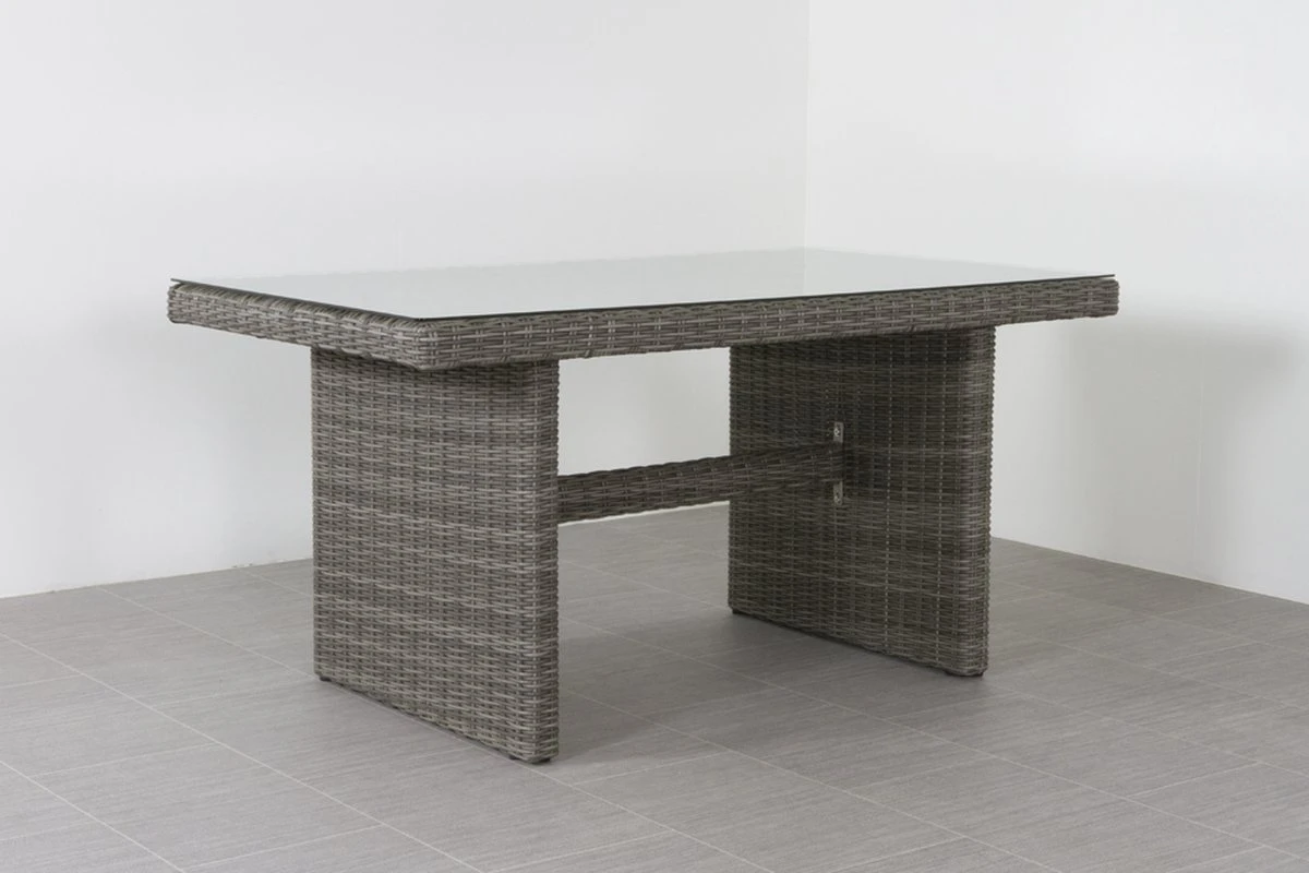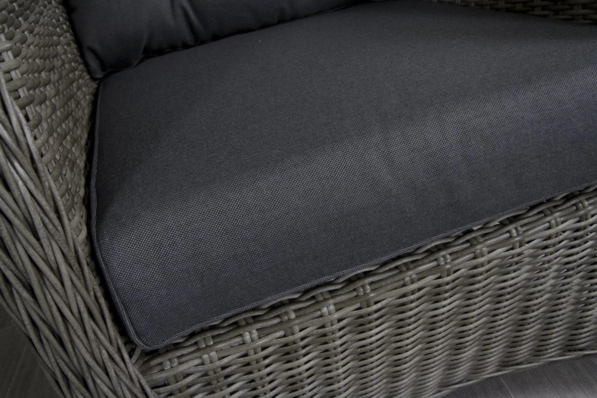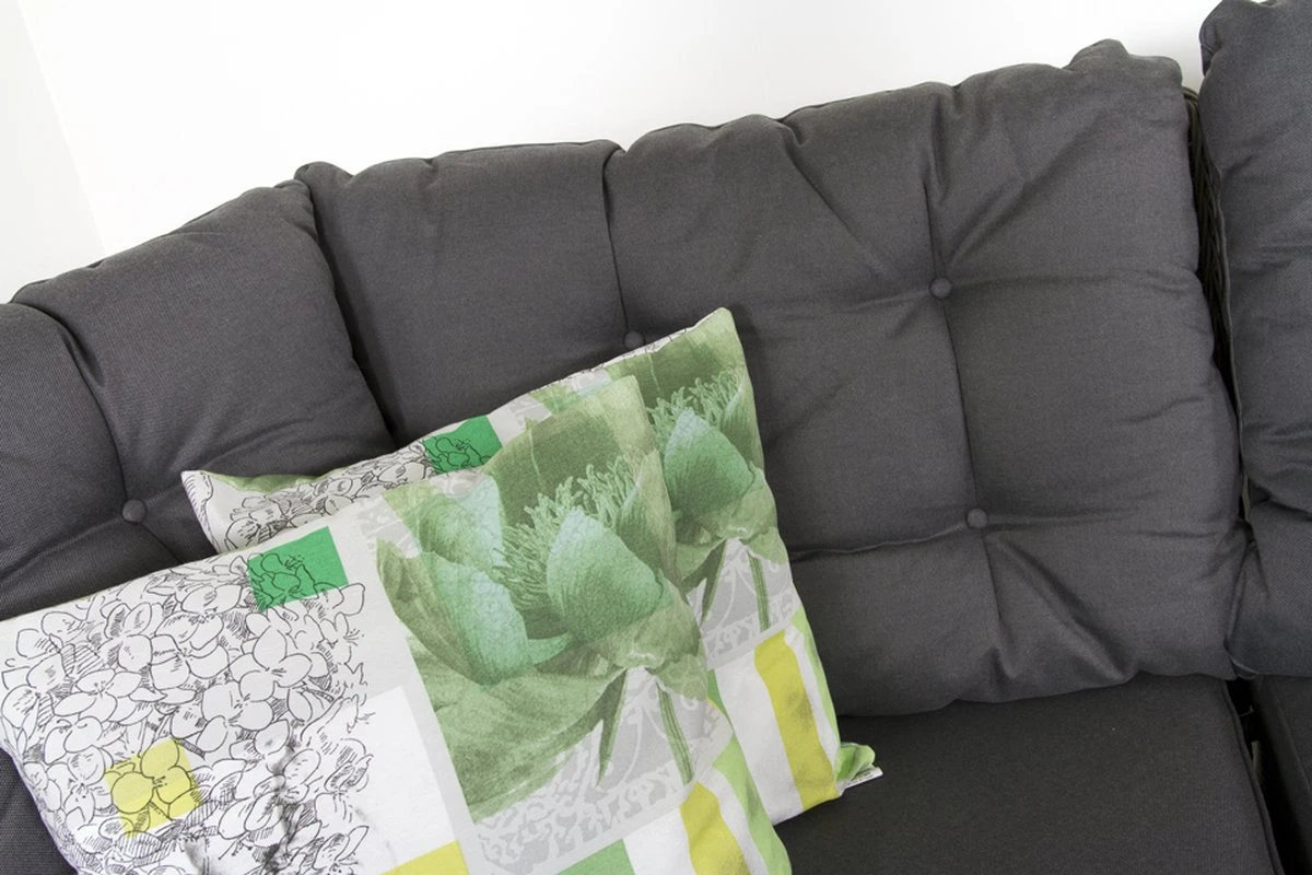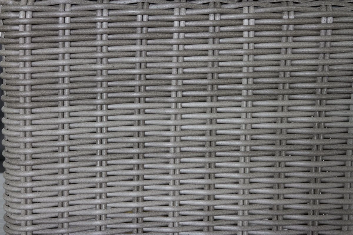 L’ensemble de salle à manger de salon Richmond a un cadre en aluminium. De la vannerie en plastique est tissée autour de ce cadre dans la couleur gris cendré. Cette couleur est mieux décrite comme un gris foncé. Les coussins de l’ensemble de salon à manger ont un revêtement hydrofuge. Cela garantit que les coussins peuvent résister à une averse de pluie et ne se décolorent pas. Les coussins d’assise ont une fermeture éclair pour pouvoir être lavés s’ils se salissent. Le plateau de la table à manger du salon a une plaque de verre. Cela garantit que vous avez un plateau de table stable et qu’aucun désordre ne peut se glisser entre la vannerie.