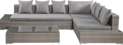 Ensemble De Salon D’angle Réglable Ibiza 6 Pièces Blanc Gris Avec Table Carrée Réglable