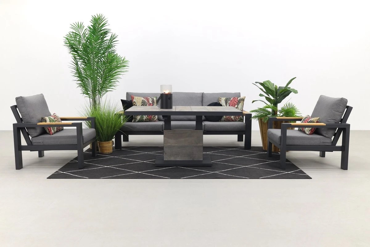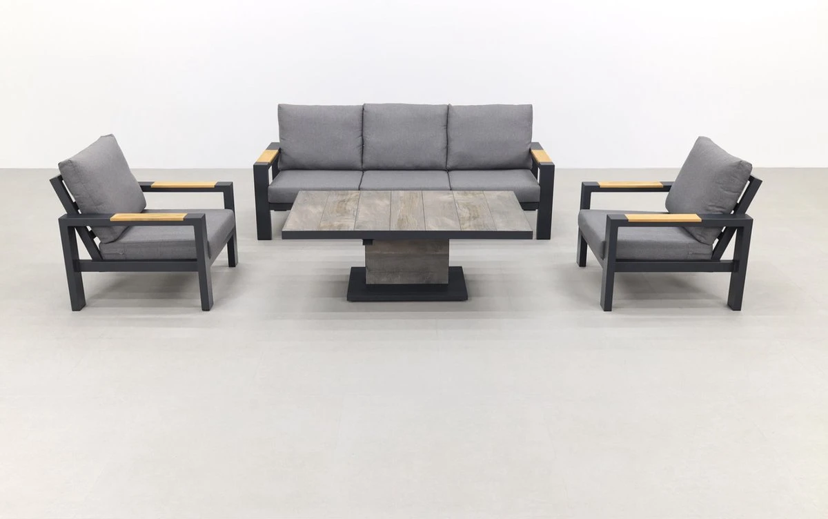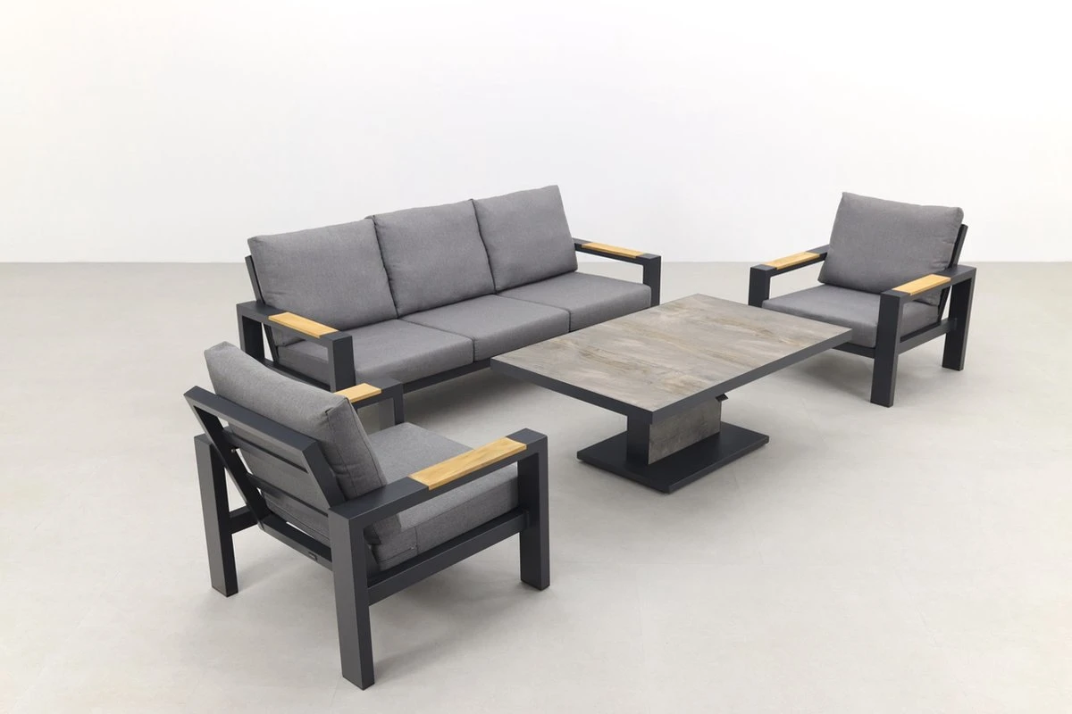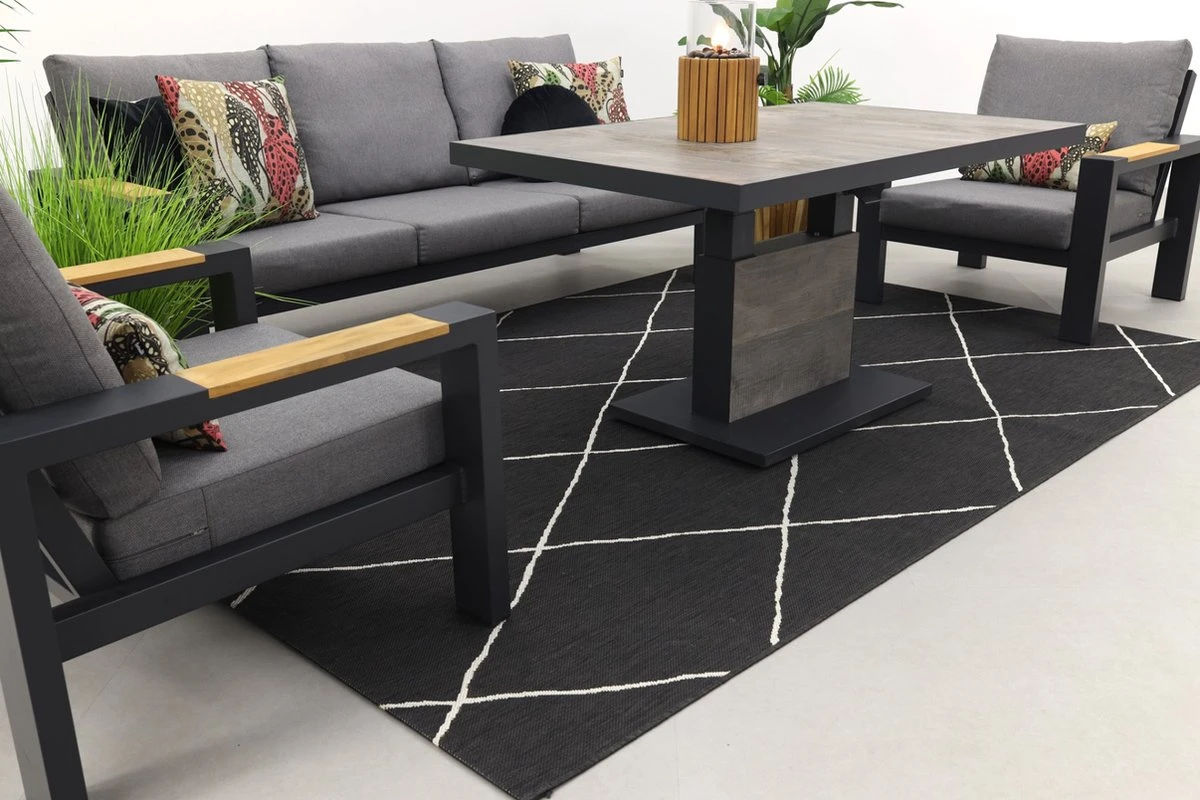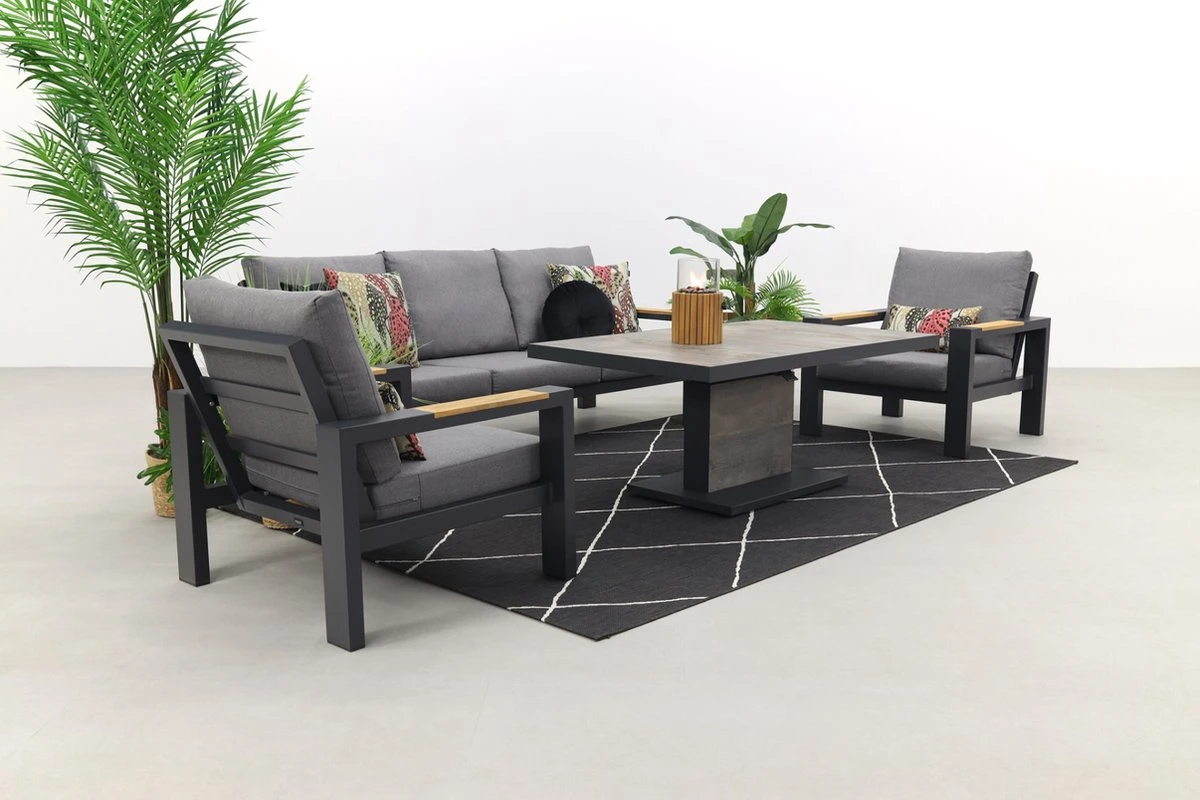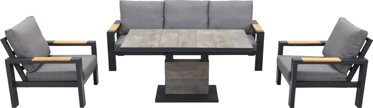 Cet ensemble de salon 4 pièces de la eigen marque Van der Garde a un look élégant et est parfait dans n’importe quel jardin ! Il est merveilleux de se détendre complètement après une dure journée de travail dans ces jolis coussins de salon. Les détails en teck donnent à cet ensemble de jardin un aspect chaleureux. Une ambiance cosy et chaleureuse pour l’extérieur ! La table de jardin Jersey Deluxe incluse est un complément parfait à cet ensemble. La table de jardin est réglable en hauteur, vous pouvez donc l’utiliser comme table de salon pratique ou comme table à manger. Les possibilités sont infinies ! Vous voyez-vous déjà assis sur ce joli canapé ou fauteuil de salon ? Alors commandez vite en ligne !