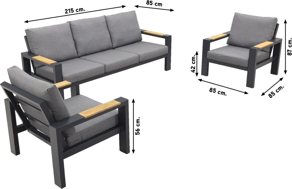 L’ensemble chaise-canapé Hammelton n’est pas seulement un régal pour les yeux, la qualité est également très solide. Le cadre de l’ensemble de salon est en aluminium et ne peut donc pas se corroder. De plus, l’aluminium est léger et donc facile à déplacer. Pour une protection supplémentaire, le cadre est fini avec un revêtement de couleur anthracite. Les accoudoirs des chaises longues et du canapé 3 places sont finis en teck. Cela a l’avantage que les accoudoirs ne peuvent pas devenir chauds au soleil. Ainsi, vous pouvez reposer vos bras sur les garde-corps en toute tranquillité. L’ensemble lounge est livré avec des coussins confortables de pas moins de 13 cm. gros, grosse. Lorsque vous n’utilisez pas les coussins, nous vous recommandons de les stocker dans un endroit sec et aéré.