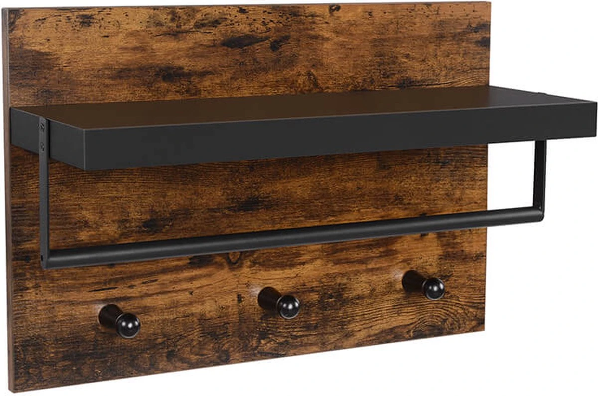 Panneau de porte-manteau facile à assembler : oubliez de passer des heures à assembler parfaitement votre porte-manteau dans le hall. Ce panneau de porte-manteau de VASAGLE est livré avec des instructions détaillées et des pièces numérotées, faisant de l’assemblage un événement moins qu’anodin. Lorsque tout sera terminé, vous aurez une entrée prête pour vos manteaux et plus encore. Plusieurs options de suspension : avec 3 boutons, vous pouvez facilement accrocher un sac ou un sac à dos sur ce porte-manteau mural pour un rangement pratique. La tige de suspension est idéale pour suspendre des vestes et des chemises dans lesquelles vous préférez ne pas avoir de bosses aux épaules. L’étagère du haut est idéale pour ranger des clés, un portefeuille ou de petites décorations. Options de design : ce panneau de porte-manteau mural est disponible en 3 styles différents, vous donnant le choix dont vous avez besoin pour créer votre entrée idéale. Choisissez parmi un panneau marron et une étagère noire pour un look rustique, un panneau noir et une étagère marron pour un look moderne, ou un porte-manteau entièrement blanc pour un design minimaliste. DIMENSIONS : 75x19x47cm