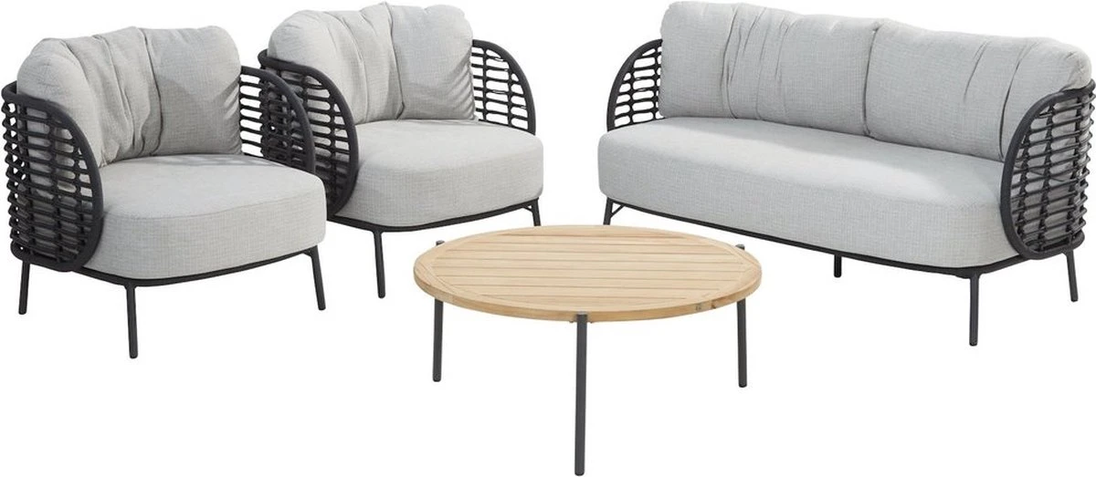 Fabrice Fauteuil Canapé Salon Ensemble 4 Parties Corde Anthracite 4 Seasons Outdoor