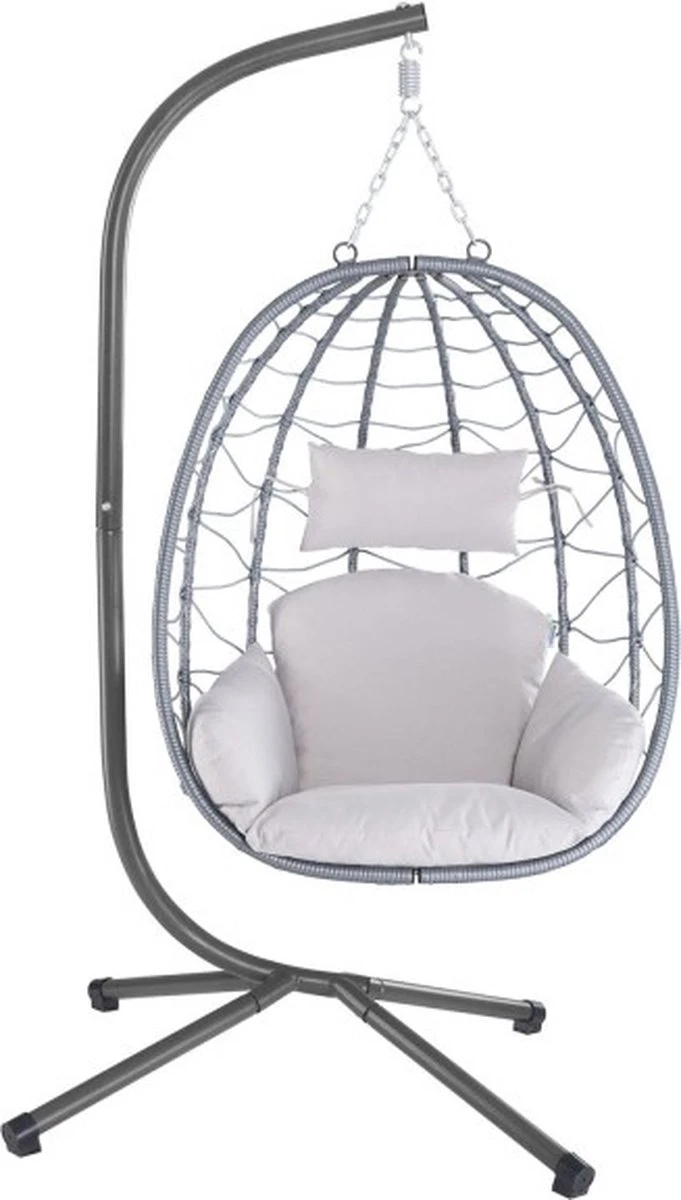 La chaise suspendue en osier moderne en argent combine un plaisir de se balancer relaxant avec un design de salon élégant. La chaise en osier confortable est utilisée pour se détendre en lisant, en regardant la télévision ou en se relaxant. Balancez-vous confortablement dans le grand fauteuil suspendu au rembourrage doux. Le fauteuil suspendu autoportant avec suspension à ressort et cadre en fer peut supporter jusqu’à 130 kg et est réglable en hauteur. Placez les beaux meubles de jardin à l’intérieur ou sur un espace extérieur résistant aux intempéries. Il met en valeur n’importe quel appartement, jardin ou terrasse. Également un excellent cadeau d’anniversaire pour les enfants, les adolescents et les adultes. Le fauteuil peut être plié pour économiser de l’espace pour le stockage.