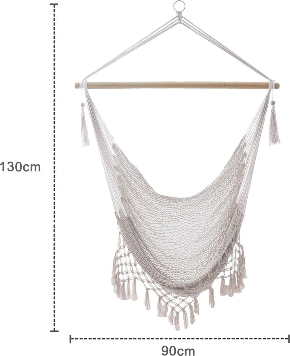 Fauteuil suspendu Intirilife Macramé en coton beige avec bord frangé – Gain de place confortable