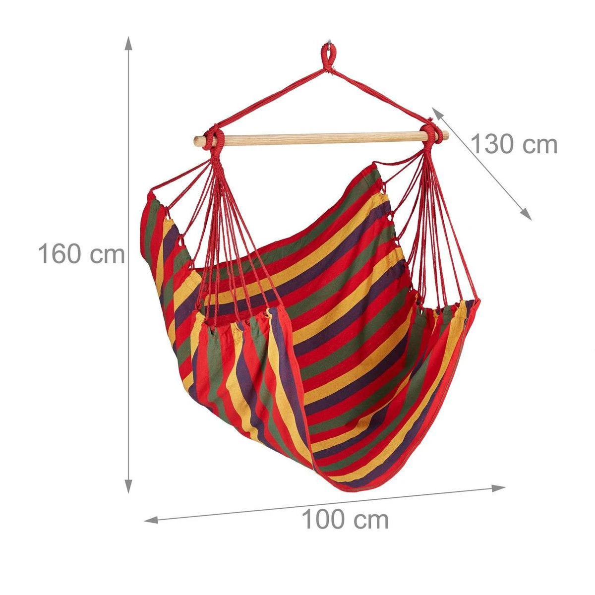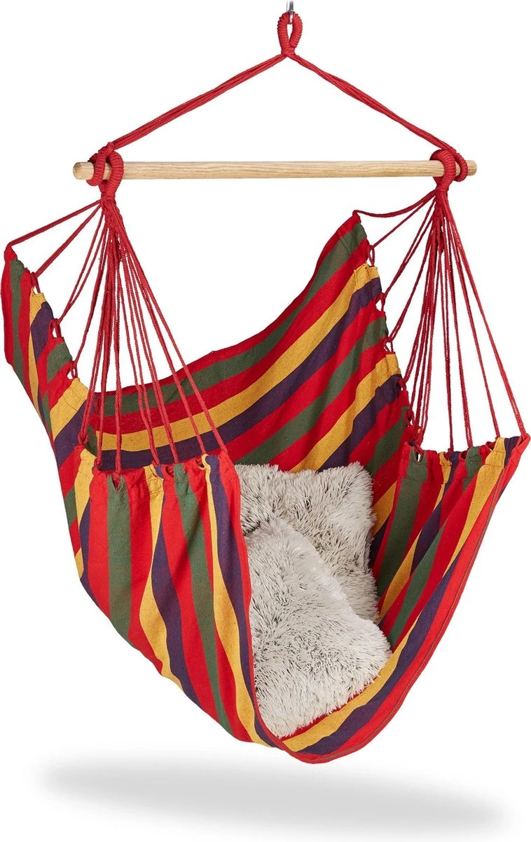 Fauteuil Suspendu Relaxdays – Moderne – Coton – 150 Kg – Chaise Hamac – Intérieur Et Extérieur Jaune / Vert / Bleu / Rouge