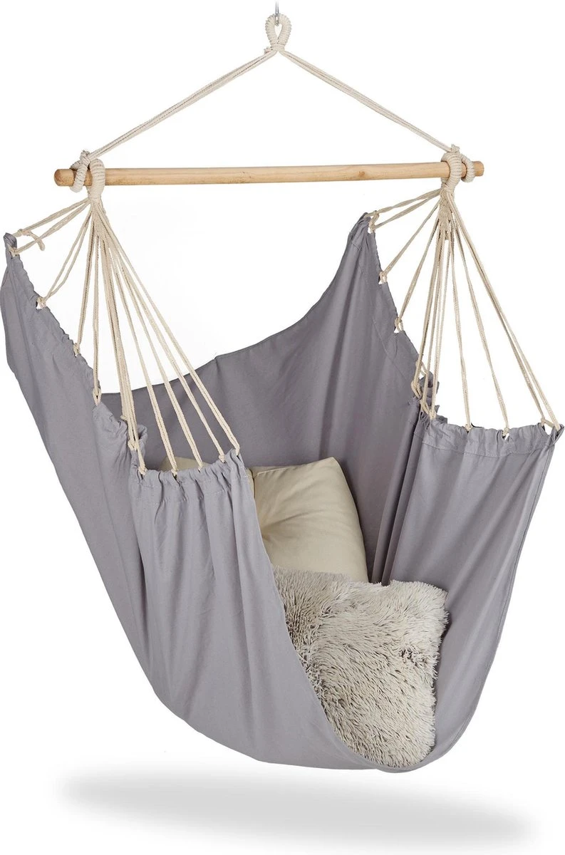 Le fauteuil suspendu est l’accessoire idéal pour la saison chaude. Que ce soit pour lire votre livre préféré dans le jardin ou pour vous détendre lors d’une excursion dans le parc, la chaise hamac en coton peut être emportée partout. Dans le salon, le fauteuil suspendu est également très bien. Il y est non seulement beau, mais il contribue aussi à la convivialité. Le mousqueton vous permet de suspendre le sac au plafond ou au cadre. Remarque : assurez-vous que le fauteuil suspendu est suspendu à des objets solides à l’aide du crochet et qu’il est suffisamment fixé. Chaise suspendue en détail – Dimensions de suspension H x L x P: env.160 x 100 x 7,5 cm – Surface d’assise L x P: env.165 x 130 cm – Dimensions de la barre transversale L x P: env.100 x 3,5 cm – Poids: env.1,5 kg – Capacité de charge jusqu’à: env.150 kg – Matériau: coton, bois Chaise hamac pour une utilisation intérieure et extérieure – Grand siège pour 1 personne jusqu’à 150 kg – Avec mousqueton pour une fixation sûre – Sièges détendus pour enfants et adultes – Accessoire cosy pour le salon – Pratique sur le camping ou dans le jardin Contenu de la livraison – 1 x chaise suspendue – 1 x mousqueton – La décoration n’est pas incluse