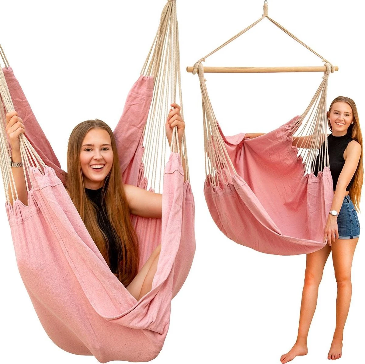 Fauteuil Suspendu Xxl 185×130 Fauteuil Suspendu 2 Personnes Fauteuil Suspendu 360° Fauteuil à Bascule Rose