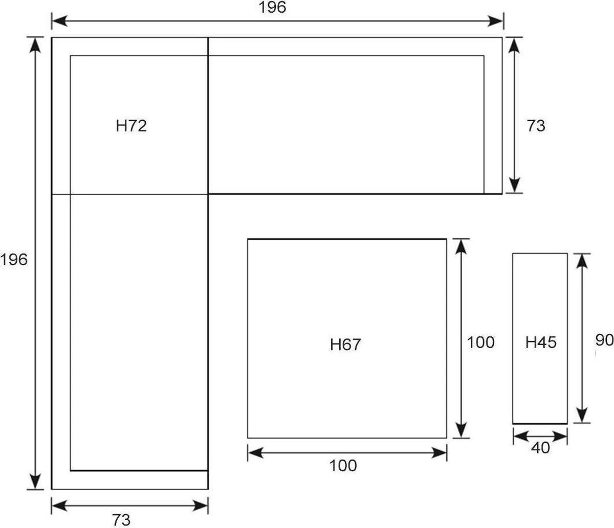 Dimensions du montage: L 195 xl 245 x H 73 cm