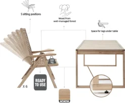 Prolenta Premium – Ensemble De Salon 6 Pièces Avec Coussins Couleur Crème En Bois D’acacia Massif