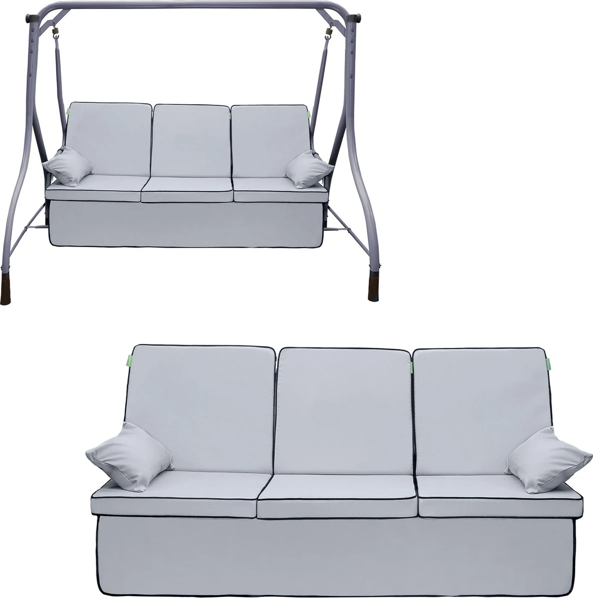 Conçus pour ajouter une touche audacieuse de style et de confort à votre balançoire, ces coussins sont épais, durables et résistants à l’eau, ils sont parfaits pour une utilisation en extérieur. Le dossier et le coussin du canapé sont fixés pour une assise facile sur le siège.