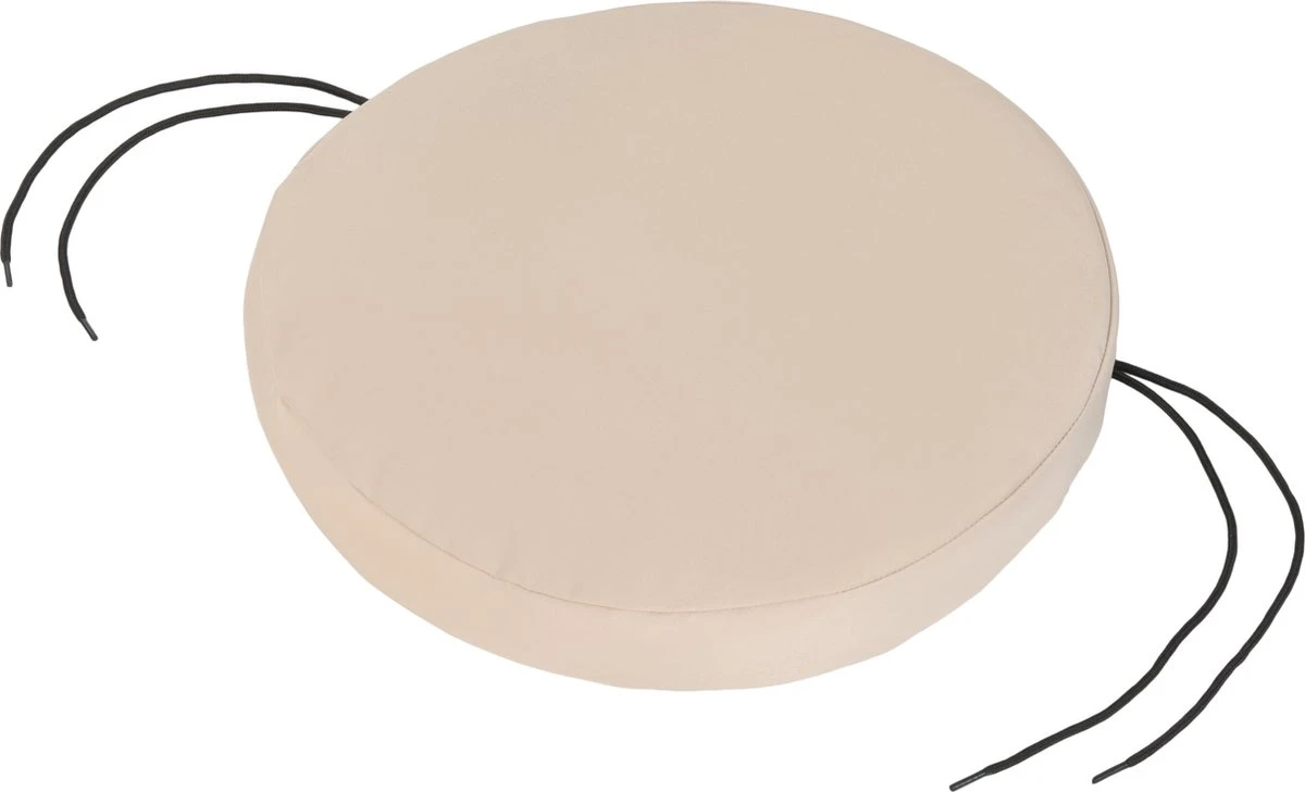 La housse du coussin de siège est 100 % polyester et le kussen lui-même est rempli de mousse, ce qui le rend léger, durable et surtout confortable. Les dimensions du coussin d’assise sont de 33 cm de diamètre et 4 cm d’épaisseur.
