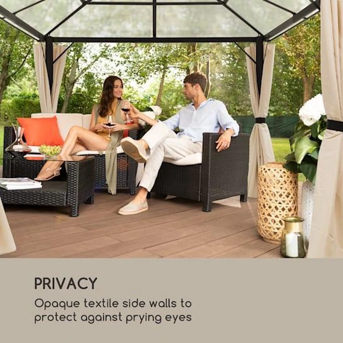 • Ensemble complet abordable : pavillon avec parois latérales et moustiquaires