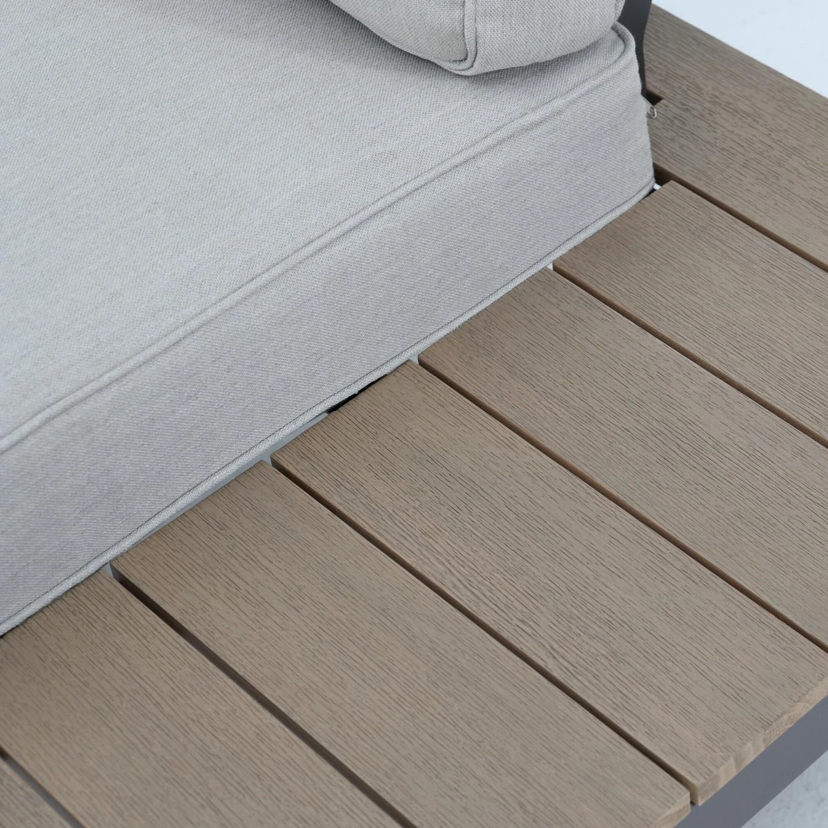 - Durable : l’eucalyptus est un bois tropical qui est à la fois esthétique et intrinsèquement durable et solide, capable de résister à l’extérieur. Le cadre en aluminium de ce mobilier de jardin garantit des années de résistance à la rouille et aux intempéries.