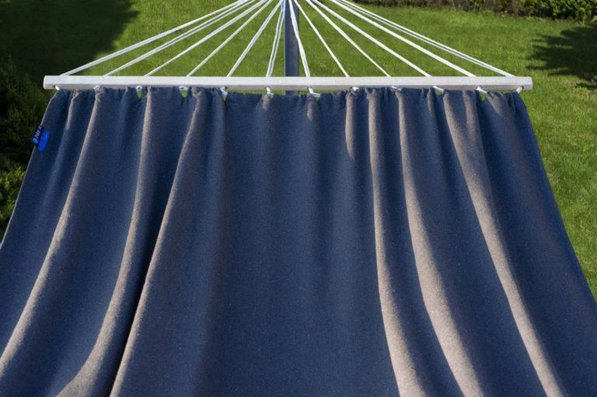 Le hamac est fait de coton de haute qualité avec une densité de tissu de 320 g / m2. Le coton bariolé est doux au toucher, facile à nettoyer et grâce aux bords renforcés, le hamac est également très résistant. Un avantage supplémentaire est que le grand nombre de cordes soutient la surface du hamac, ce qui augmente encore le confort.