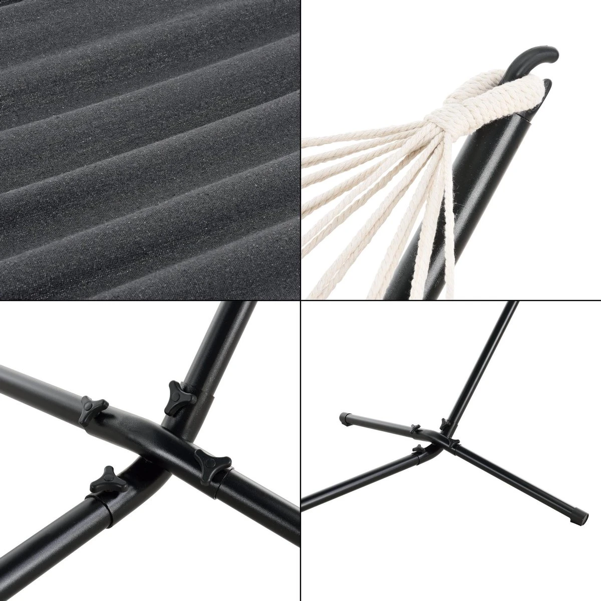 – le support en acier est inclus, l’installation du hamac au-dessus est facile