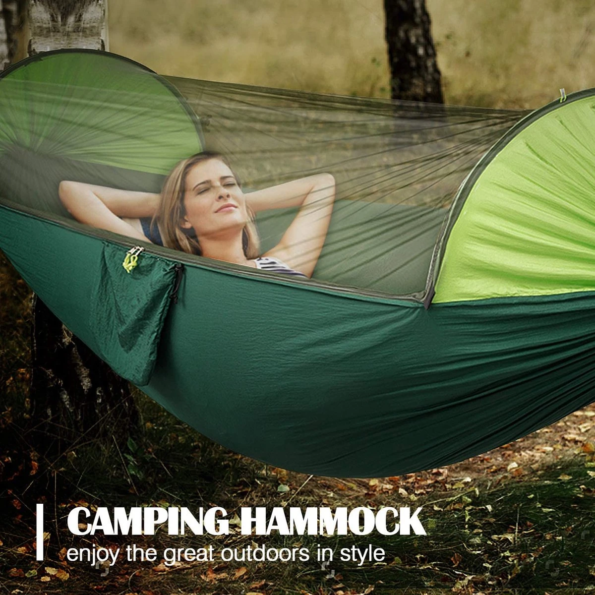 Hamac Avec Moustiquaire, Hamac Outdoor 2 En 1 Pour 2 Personnes, Hamac En Nylon De Parachute Portable Ultra-léger Avec Capacité De Poids De 200 Kg Pour Camping En Outdoor – Vert