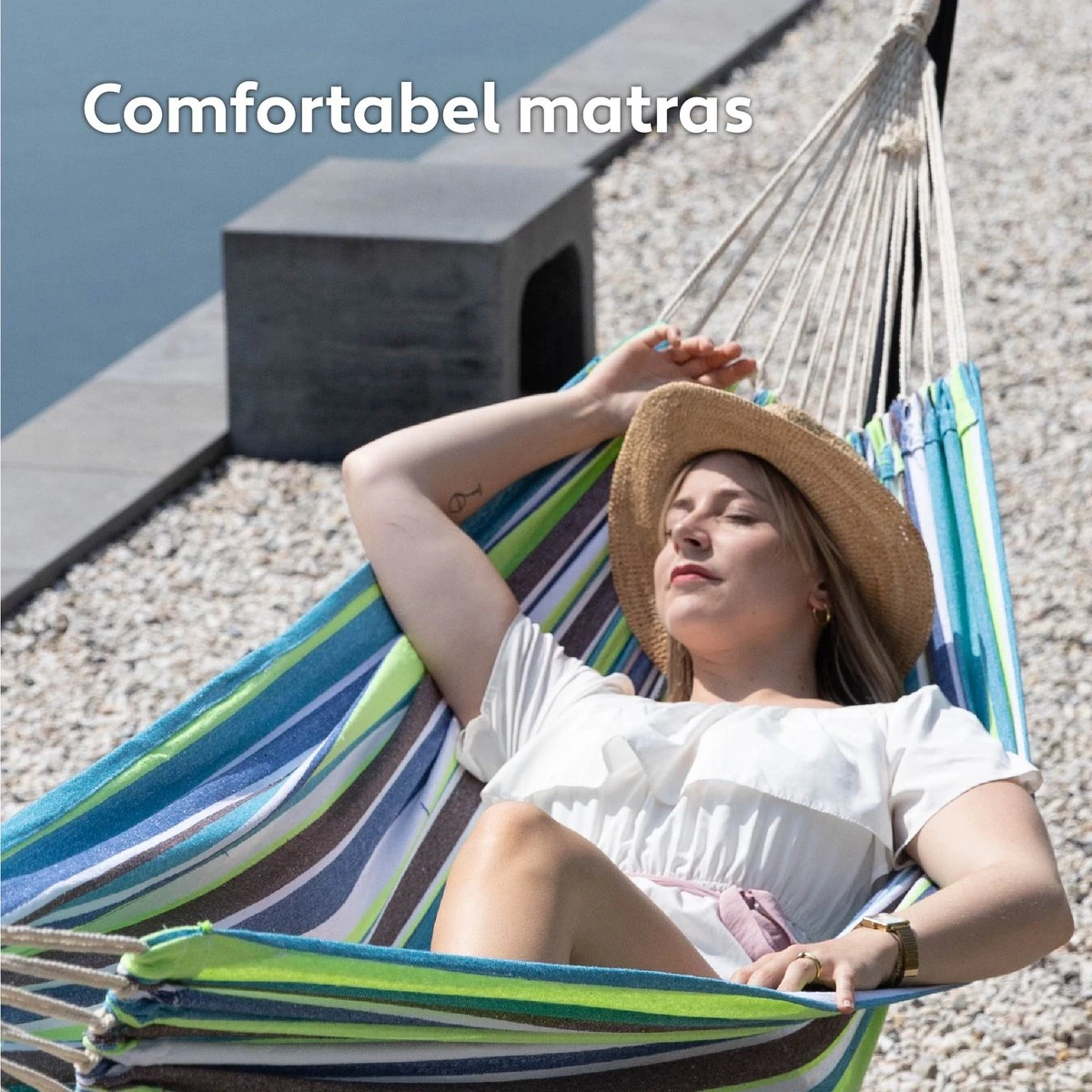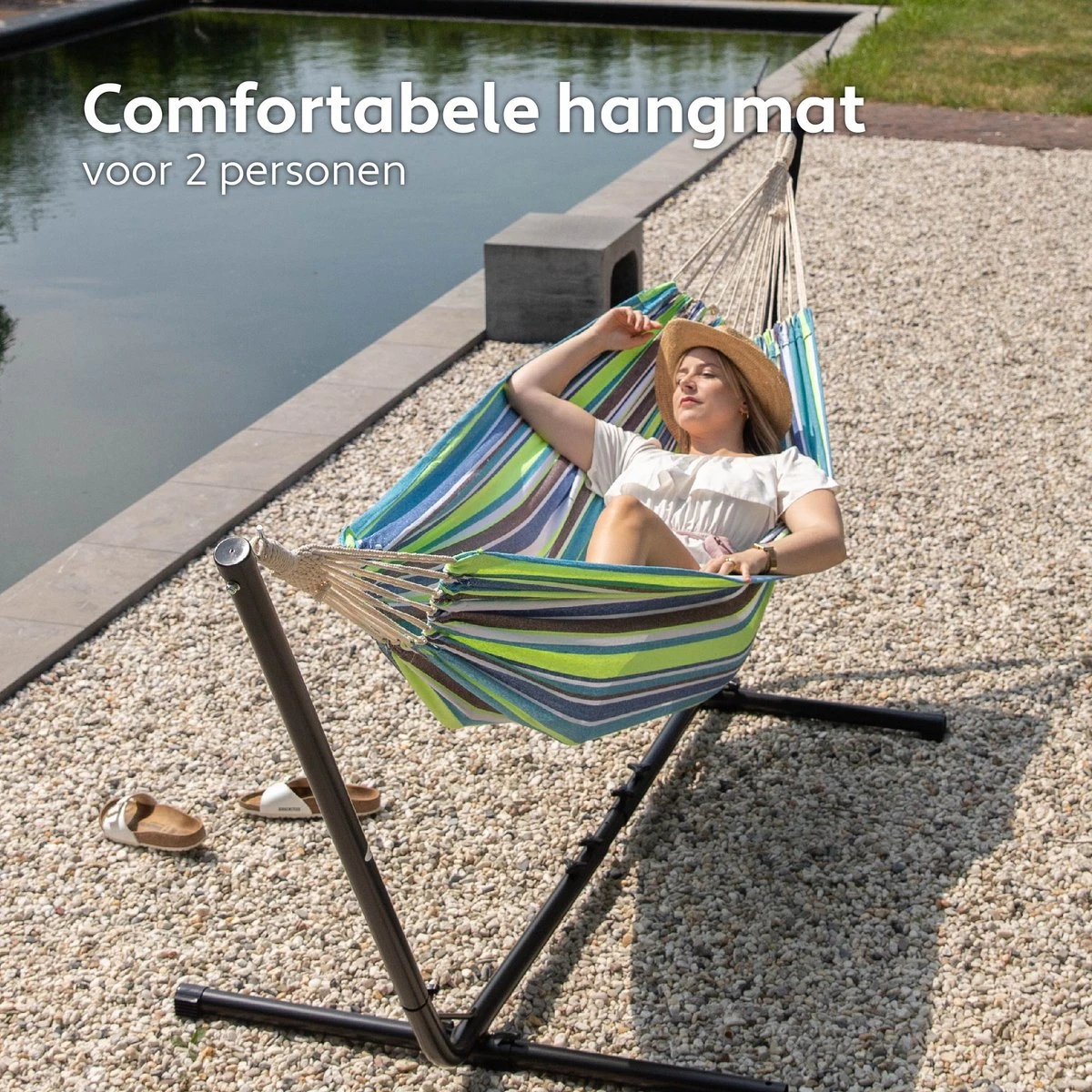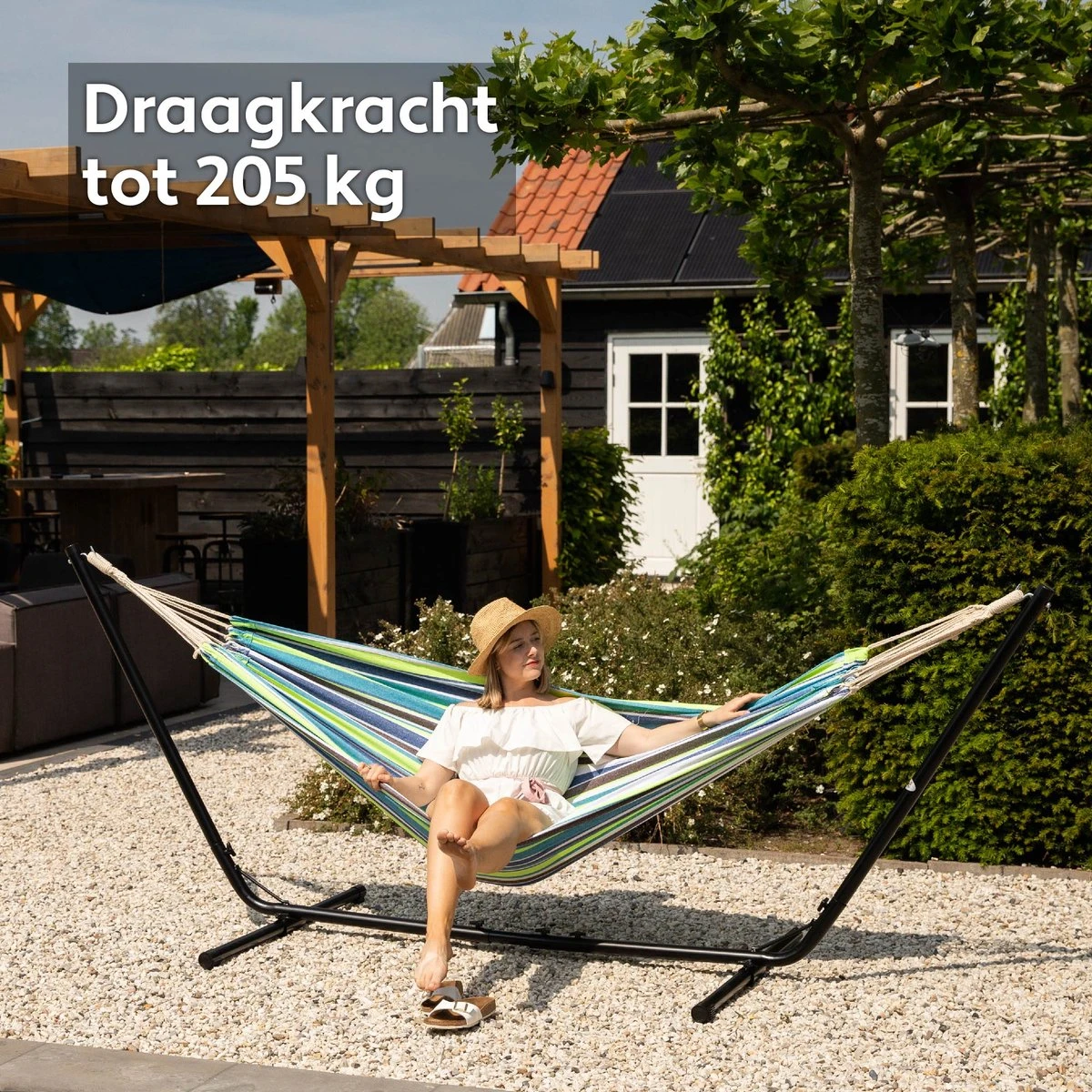 Le support pour hamac et la toile pour hamac sont conçus pour une charge maximale de 205 kg. De cette façon, vous pourrez profiter du hamac ensemble.