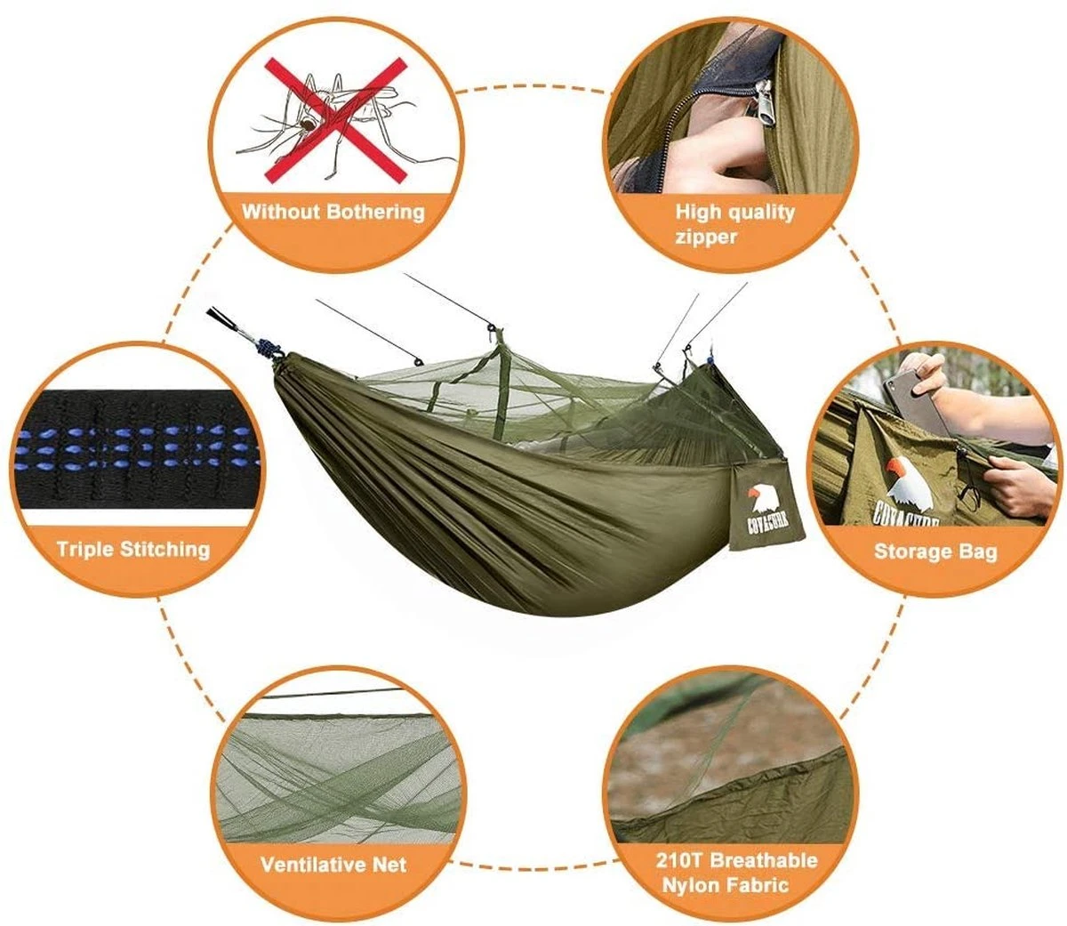 Hamac Covacure Pour 2 Personnes, Avec Moustiquaire, Ultra-léger, Respirant, à Séchage Rapide, Matière : Toile De Parachute, Pour Le Camping, Les Voyages, La Plage Et Le Jardin, Charge Maximale : 200 Kg