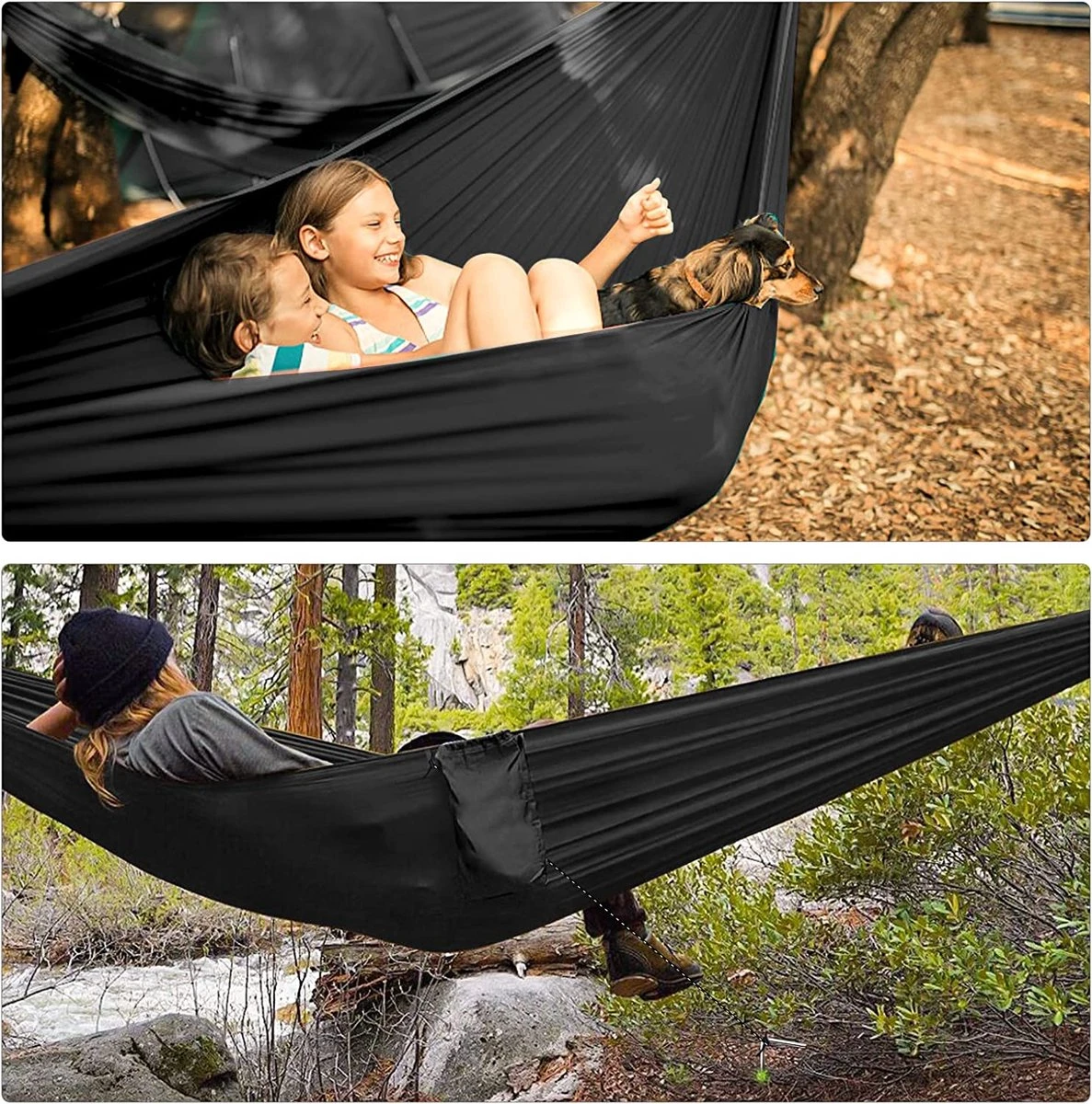 - Hamac durable et fiable – Fabriqué en nylon parachute 210T de haute qualité, résistant à la déchirure, respirant et à séchage rapide. Transportez le poids en toute sécurité jusqu’à 350 kg.