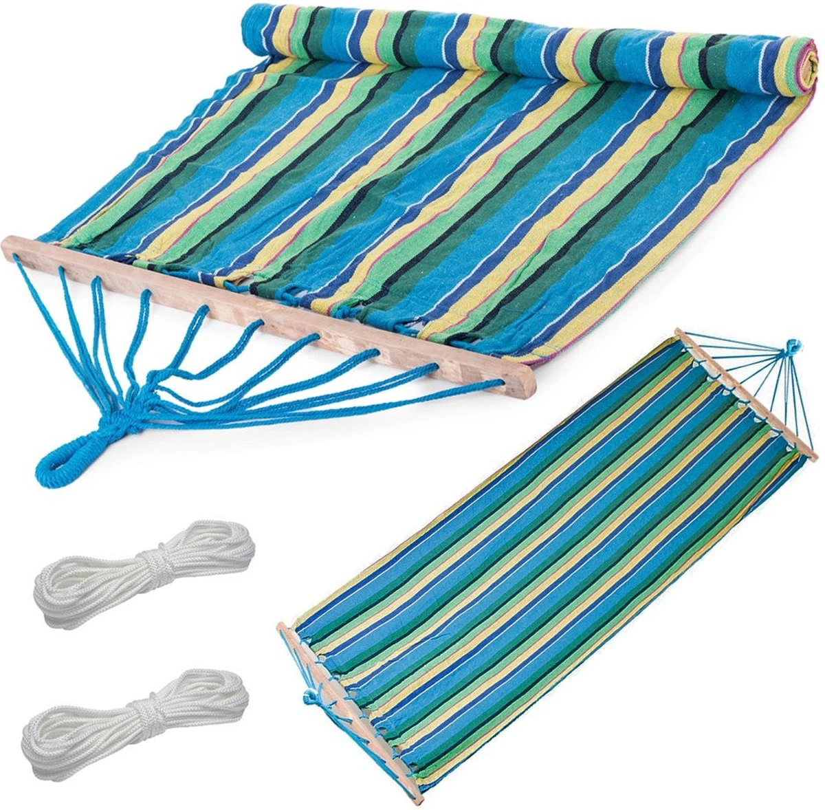 Il a deux cadres en bois qui maintiennent le hamac stable et confortable.