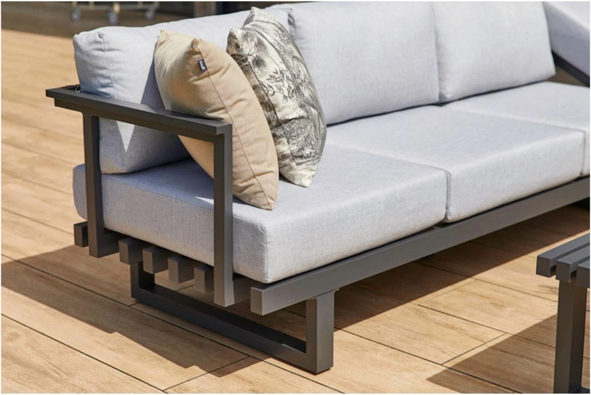 En plus du confort et d’un beau design, le canapé lounge 5 personnes Hartman est également équipé de matériaux pouvant résister à diverses conditions météorologiques. Le canapé de jardin a un cadre en aluminium, ce qui garantit que le canapé d’angle du salon Calabria est stable et dure longtemps. Les coussins du canapé peuvent également prendre des coups. LesHousse en mousse à Quick rapide résiste à diverses conditions météorologiques et ne moisira pas.