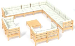 Prolenta Premium – Ensemble De Salon 14 Pièces Avec Coussins Couleur Crème Pinède – Maison Et Jardin
