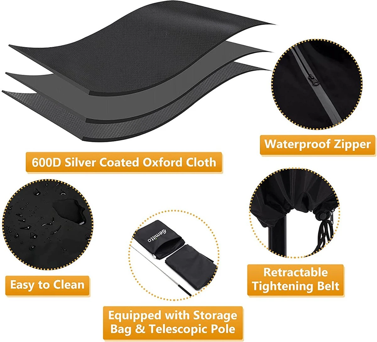 - Housse de protection pour parasol avec tige : Notre housse de parasol est équipée d’une tige à sertir, ce qui vous permet d’installer la housse de parasol sans échelle. Vous pouvez utiliser la tige pour placer la housse de parapluie sur une toile debout et terminer l’installation.