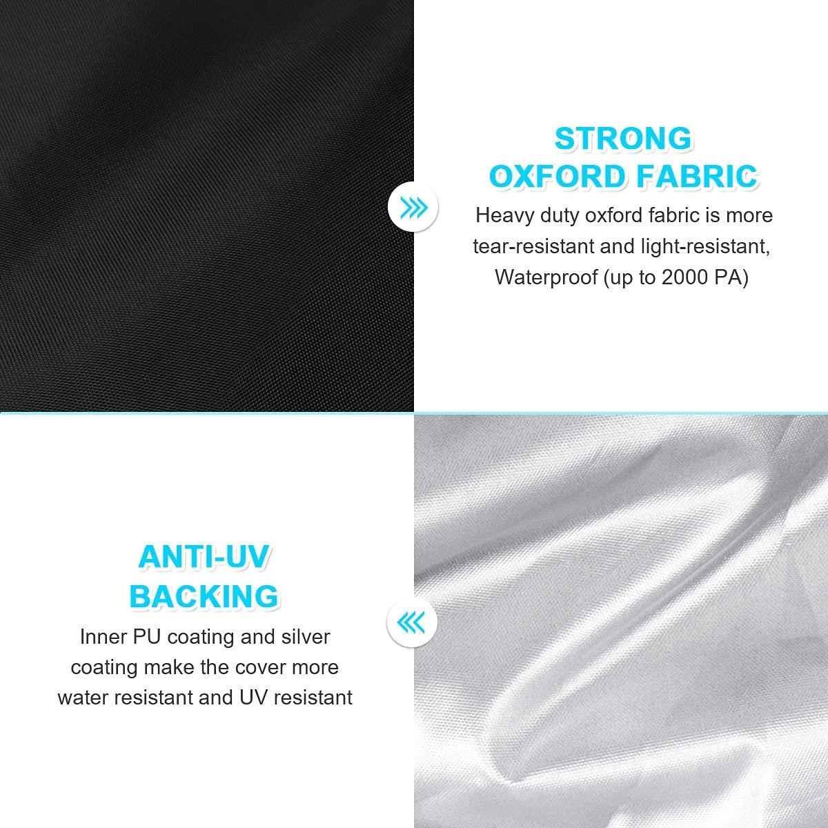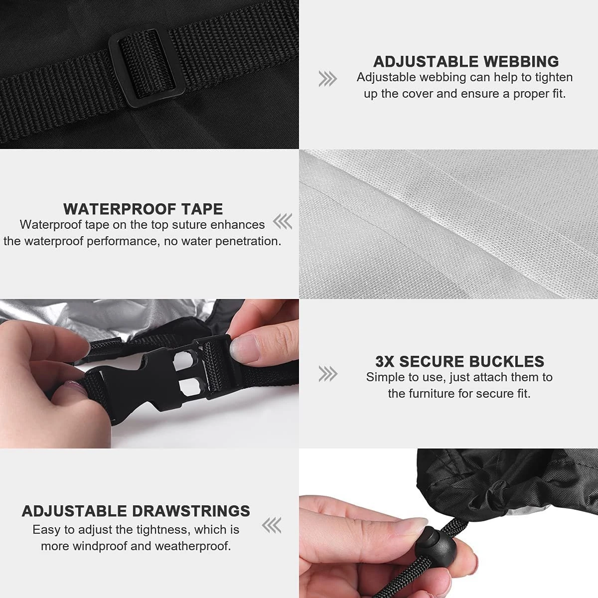 ► 【Conception coupe-vent】 3 boucles de sécurité en bas garantissent une installation rapide. La sangle réglable au milieu et le cordon de serrage inférieur peuvent aider à serrer la housse afin qu’elle soit solidement fixée au foyer extérieur et ne soit pas emportée même par vent fort.