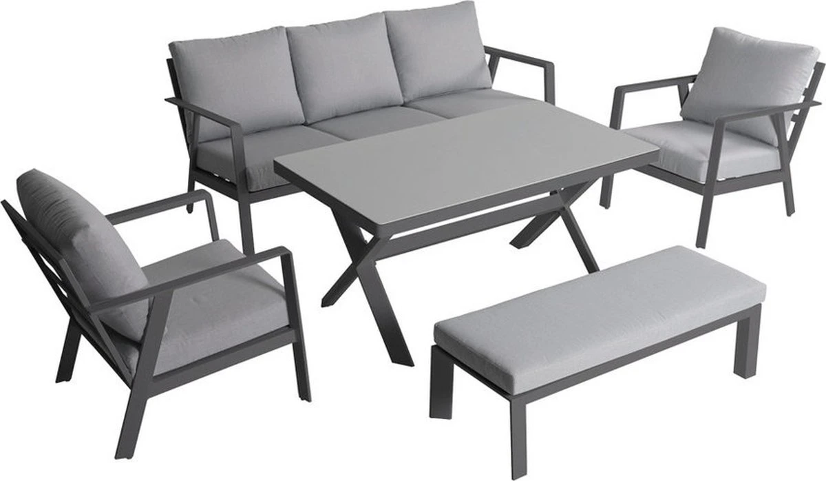 Jamaica Chaise Canapé Salle à Manger Ensemble De Salon 5 Pièces Aluminium Anthracite