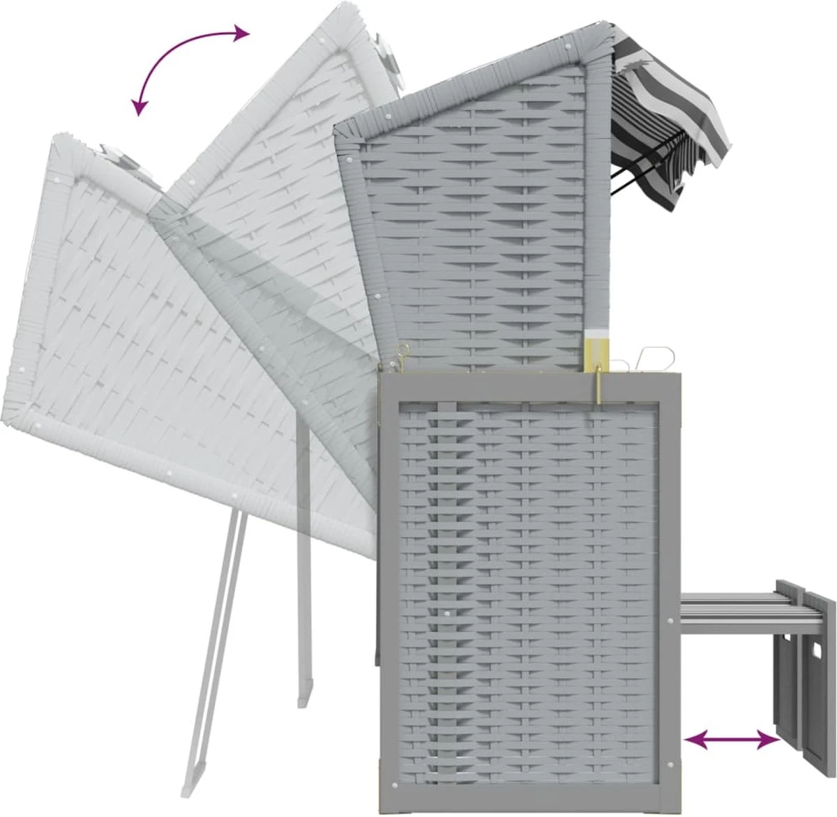 - CaractĂ©ristiques pratiques : la chaise de plage a un auvent qui vous protège du soleil et les panneaux latĂ©raux vous permettent d’en profiter mĂŞme les jours de vent.