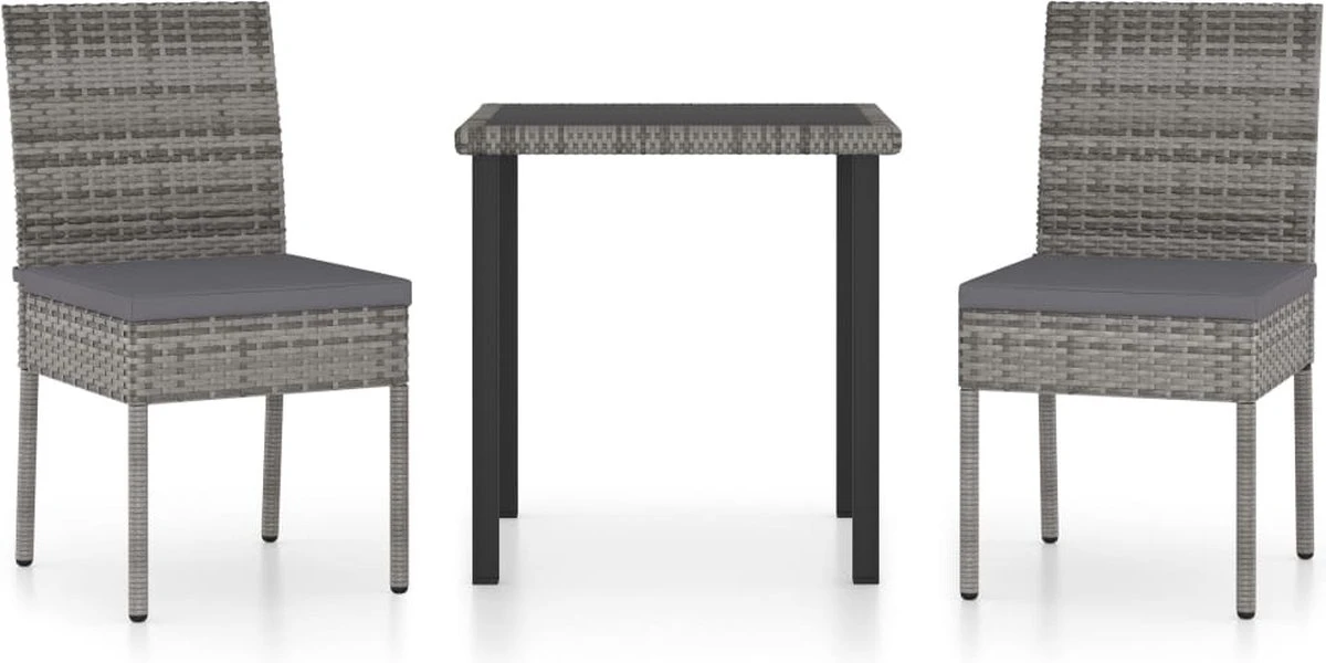 Le cadre en acier rend la table et les chaises robustes et stables. L’ensemble est également léger, de sorte que toutes les pièces sont faciles à déplacer et adaptées à une utilisation en extérieur. Grâce au rotin PE résistant aux intempéries et à l’eau, cet ensemble de mobilier d’extérieur est facile à nettoyer et durable. Les coussins d’assise amovibles et rembourrés offrent un confort d’assise supplémentaire.