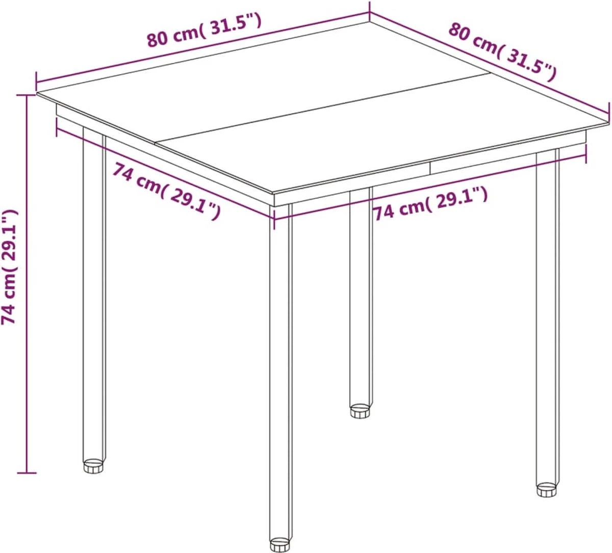 - Dimensions de la table: 80 x 80 x 74 cm (L xlx H)