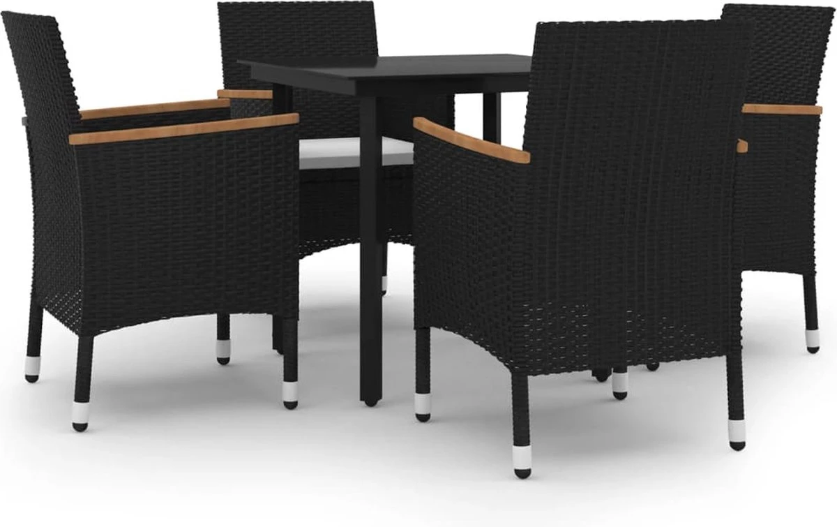 Grâce au cadre en acier enduit de poudre, la table et les chaises sont robustes et durables. Les chaises sont en rotin PE résistant aux intempéries et à l’eau. Ils sont faciles à nettoyer, durables et adaptés à un usage quotidien. Le dessus de table en verre lisse est idéal pour placer des boissons, de la nourriture ou certains objets décoratifs. De plus, les chaises offrent un confort d’assise supplémentaire grâce aux coussins d’assise épais et rembourrés.