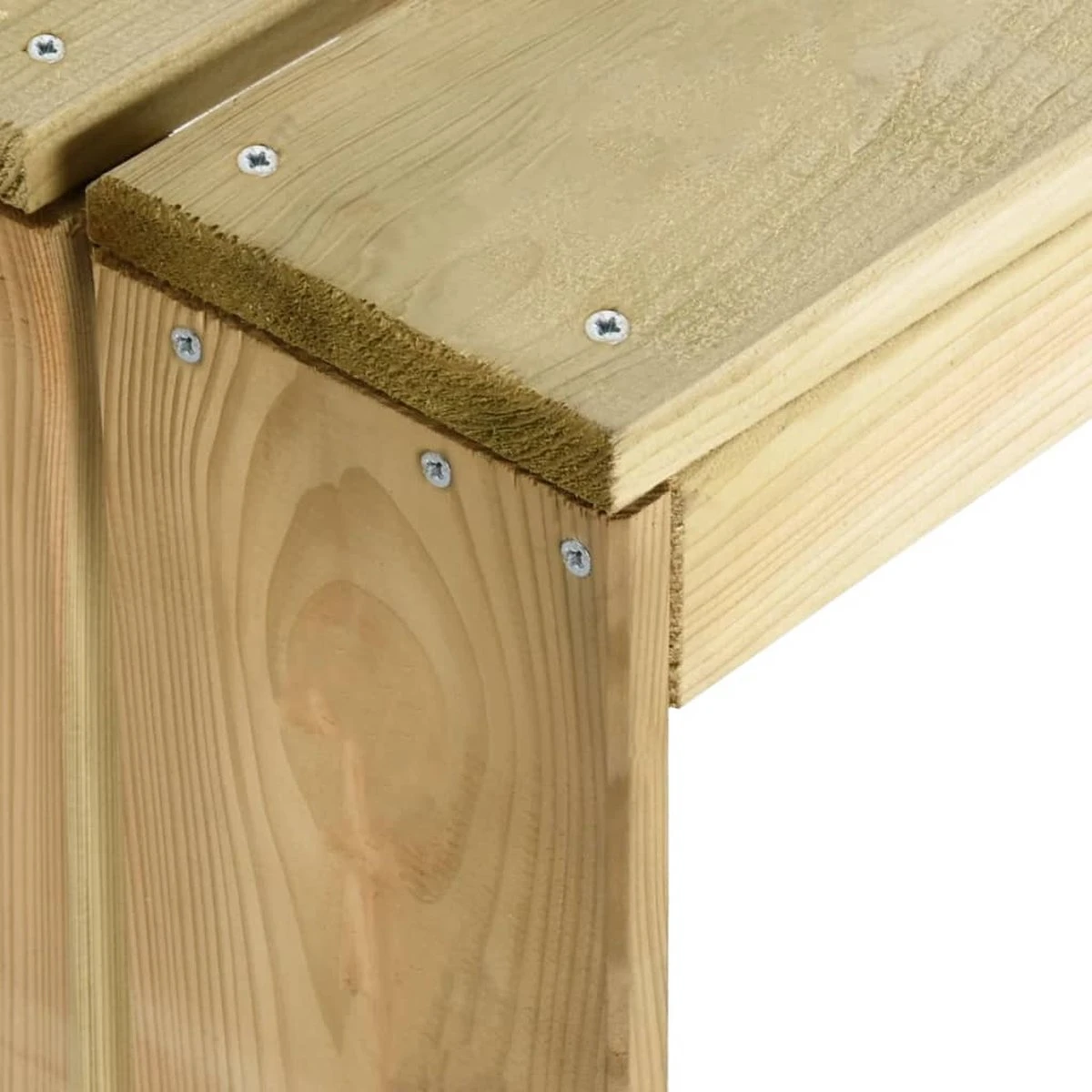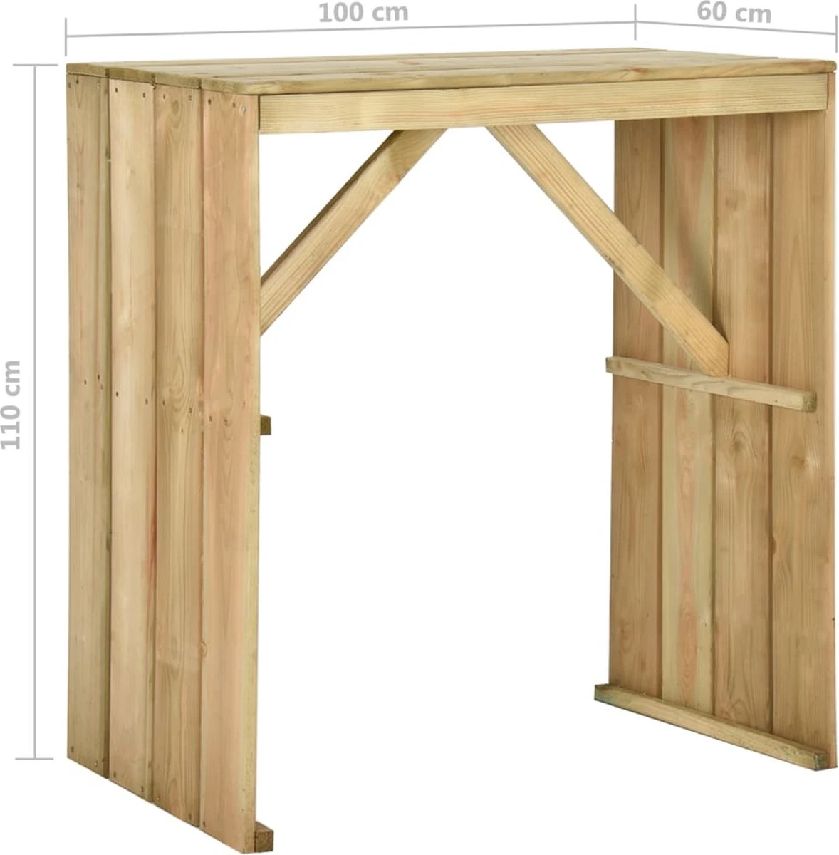 Cet ensemble de bar en bois est fait de bois de pin imprégné de vert et est très robuste, durable et résistant à la corrosion. L’ensemble de meubles est un choix idéal pour des moments de détente dans un jardin romantique, au bord d’un étang idyllique ou pour passer du temps avec la famille et les amis. N’oubliez pas que le bois est un produit naturel et qu’il peut présenter des imperfections.