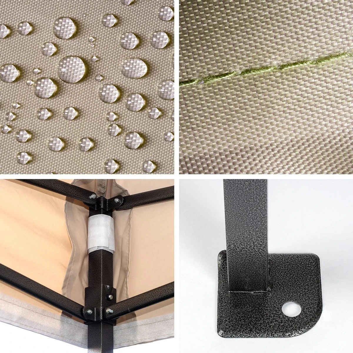 Vous pouvez définir le rectangle de sélection à trois hauteurs différentes. Ce sont: 290 cm – 300 cm – 310 cm. Le diamètre du toit est de 297 cm. De cette façon, la tente de fête s’adapte à tout type d’occasions! Lorsque vous ouvrez le chapiteau, sélectionnez vous-même la hauteur souhaitée à l’aide des boutons poussoirs pratiques sur les pieds.