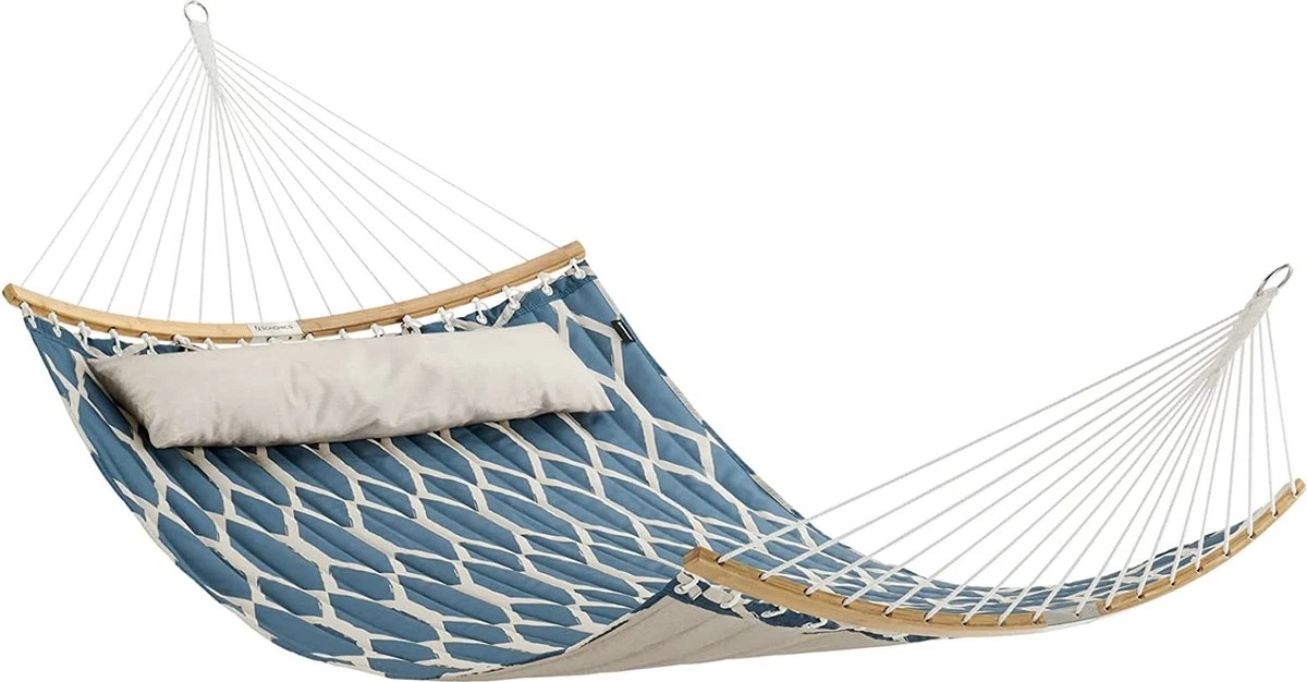 LIVINGSIGNS Hamac, Rembourré, Avec Tiges De Bambou Incurvées Divisibles, Avec Appui-tête, 200 X 140 Cm, Chargeable Jusqu’à 225 Kg, Carreaux Bleus Et Beiges