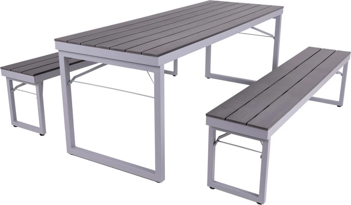 Des invités inattendus vous rejoignent régulièrement?! Vous n’avez pas toujours de l’espace et ne trouvez pas que l’entretien de votre set de pique-nique est un travail amusant ? Alors utilisez notre set de pique-nique pliable en polywood Hamburg ! Cet ensemble de pique-nique à faible entretien avec 2 bancs séparés est facile à déplier et à placer où vous le souhaitez. Barbecue ou dîner à la fin? Contrairement à un « service à bière » en bois collé, vous pouvez laisser ce service à l’extérieur sans aucun problème.