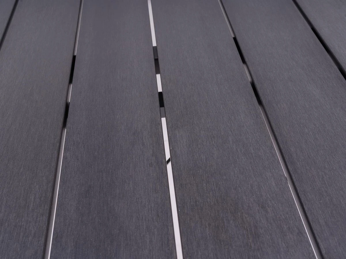 Le polywood est un plastique ayant l’apparence du bois. Il peut se produire en différentes teintes et structures. De plus, il nécessite peu d‘entretien contrairement au bois véritable. Le matériau résiste aux champignons, aux insectes et ne se fend pas. La couleur du Polywood n’est pas très intense, vous pouvez donc également ressentir ce polywood noir comme gris foncé.