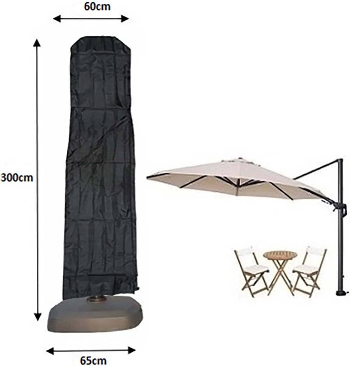 Utilisation universelle pour les parasols flottants d’une taille maximale de 250 cm. Le haut mesure 55 cm de large et se poursuit en bas sur 60 cm.