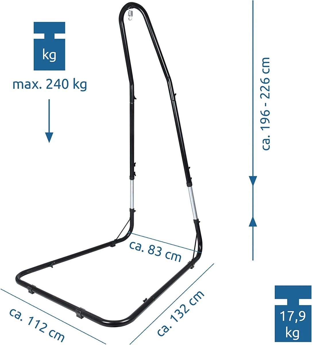 - Détendez-vous, détendez-vous, récupérez. Cadre de chaise suspendue pour suspendre en toute sécurité une chaise suspendue. Le cadre est réglable en hauteur de 196 à 226 cm, peut être utilisé pour n’importe quel fauteuil suspendu et peut facilement supporter des charges allant jusqu’à 240 kg