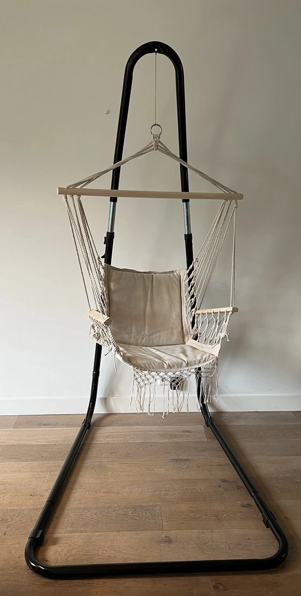 - Facile à assembler. Support de chaise hamac composé de segments d’acier tubulaires – emboîtez, vissez, c’est fait. La livraison comprend un ressort en acier, une chaîne et un mousqueton, de sorte que tout type de fauteuil suspendu peut être suspendu sans aucun problème