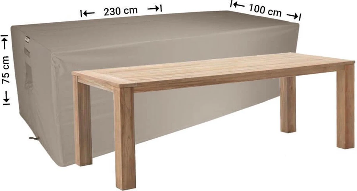 Une housse de protection robuste, astucieuse et belle pour votre table de jardin ? C’est possible! Avec les couvertures de Raffles Covers. Prenez cette housse de table de jardin par exemple. La housse elle-mĂȘme est fabriquĂ©e en polyester 600D trĂšs rĂ©sistant, qui est fini Ă l’intĂ©rieur avec un revĂȘtement PU respirant et hydrofuge. Cette belle qualitĂ© Ă©paisse, 230 grammes par mÂČ, ne claquera pas au vent. Le matĂ©riau est Ă©galement teint en solution, de sorte qu’il ne se dĂ©colore pas au soleil. La couverture est Ă©galement rĂ©sistante aux UV et robuste, de sorte que le soleil et le gel n’affecteront pas la couverture. Les coutures sont trĂšs solides grĂące Ă la double couture. Ces coutures sont scellĂ©es Ă l’intĂ©rieur avec du ruban PVC impermĂ©able. Les coutures sont donc anti-Ă©claboussures.