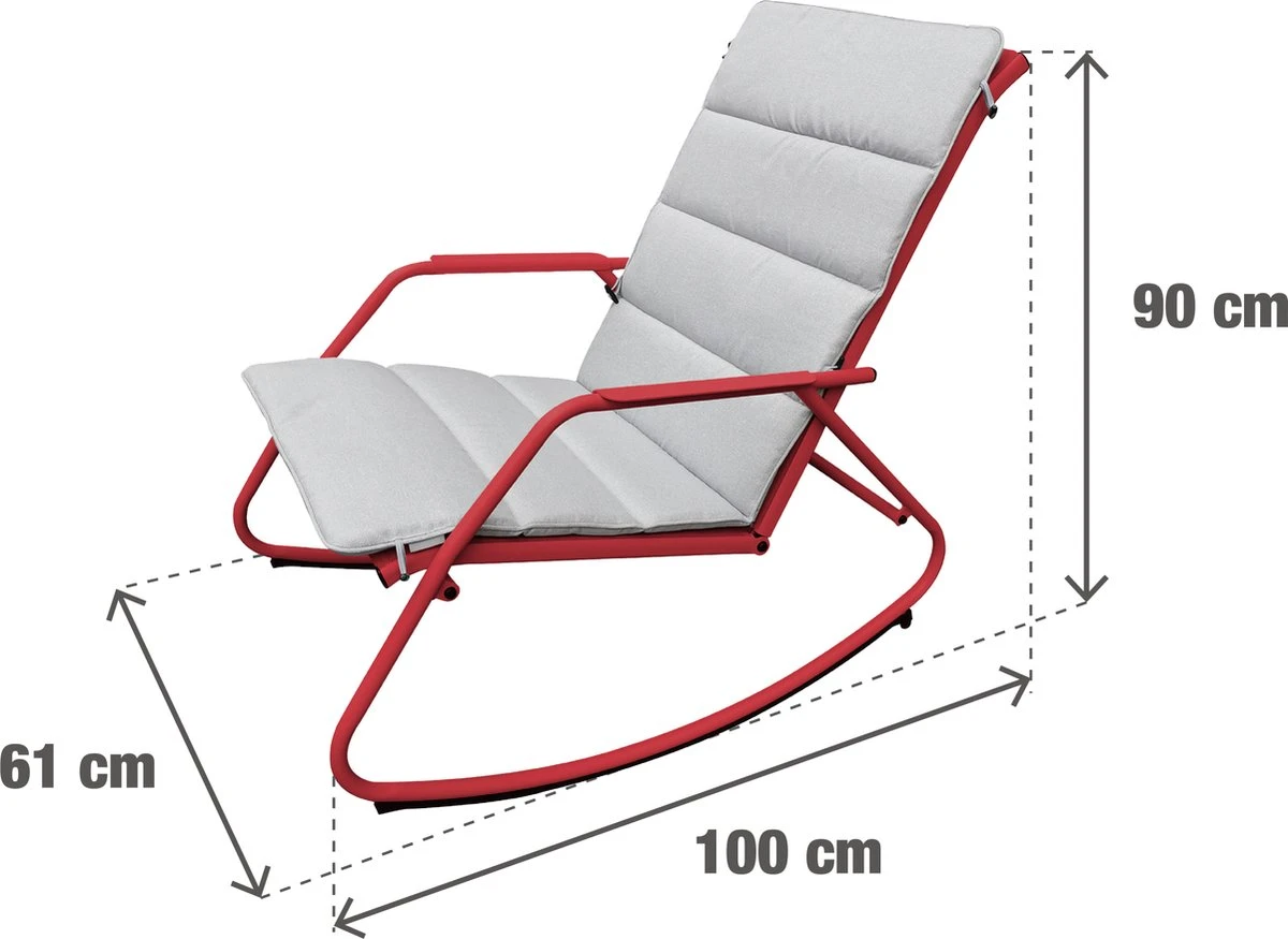 - DESIGN : Le rocking chair traditionnel est revisité et revitalisé avec ce fauteuil nieuw . Sa structure rouge moderne permet de se détendre à l’extérieur tout en conservant une décoration contemporaine. Le kussen peut être facilement détaché selon vos préférences.