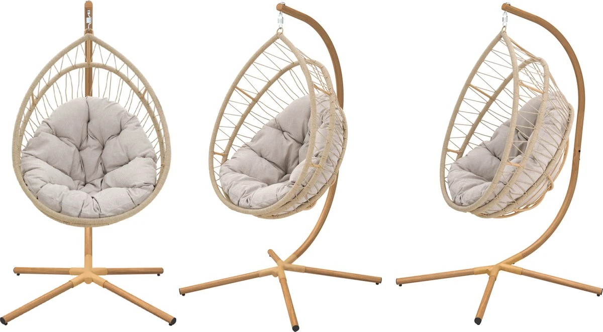 - PRATIQUE : Le cadre peut être replié pour un rangement facile hors saison. Le fauteuil est également polyvalent : il est réglable en hauteur et peut être utilisé aussi bien à l’intérieur qu’à l’extérieur.