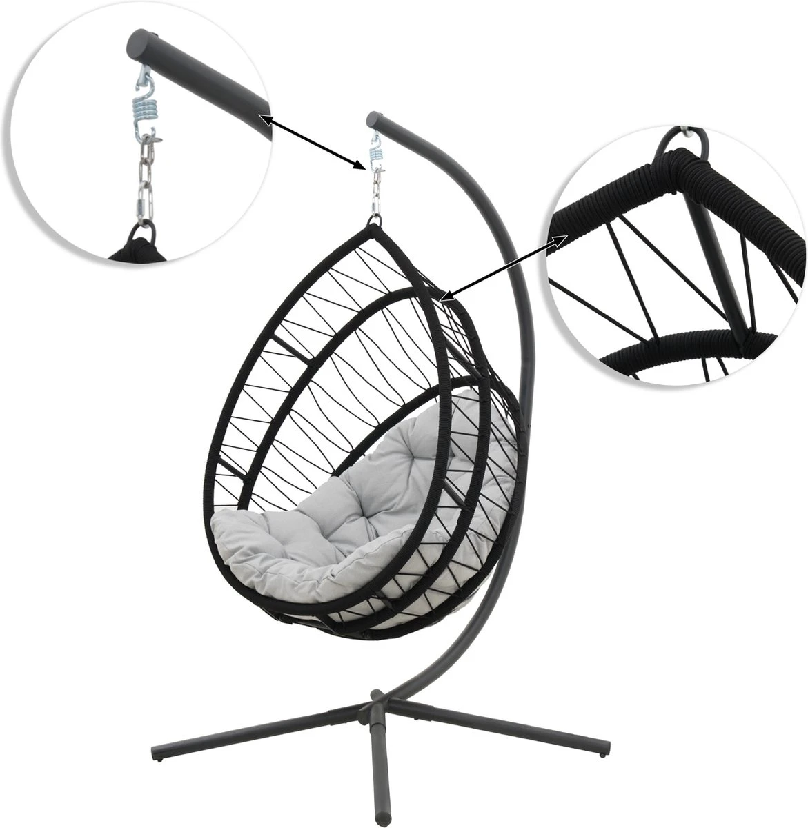 - CONFORTABLE : Le siège en forme de panier offre un soutien optimal et le kussen moelleux assure un grand confort. Les pieds en acier assurent la stabilité et la chaîne flexible permet de régler le fauteuil individuellement en hauteur. Grâce à la suspension, vous ressentez de la légèreté dans votre cocon et vous retrouvez rapidement la relaxation grâce à un doux balancement.