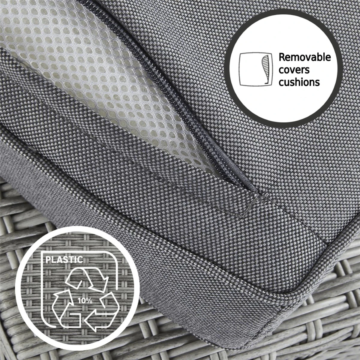 - RÉSISTANT : La structure en aluminium et les ferrures en acier galvanisé vous promettent une longue résistance à la rouille et aux intempéries. La résine tressée est en polyéthylène (recyclé à 10%) et peut supporter de grands changements de température.